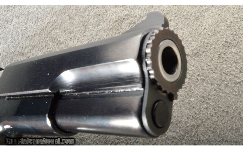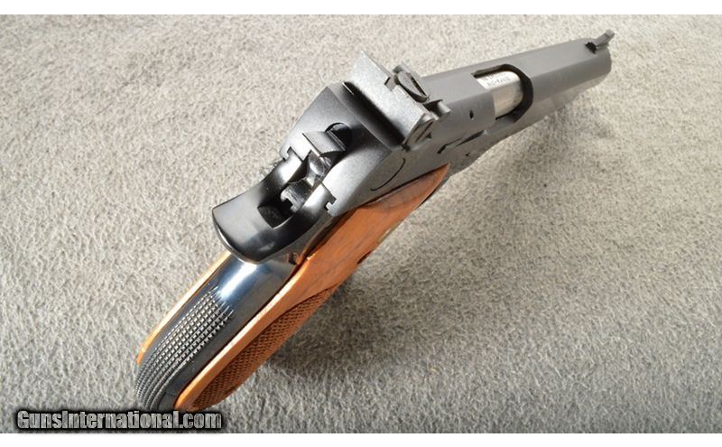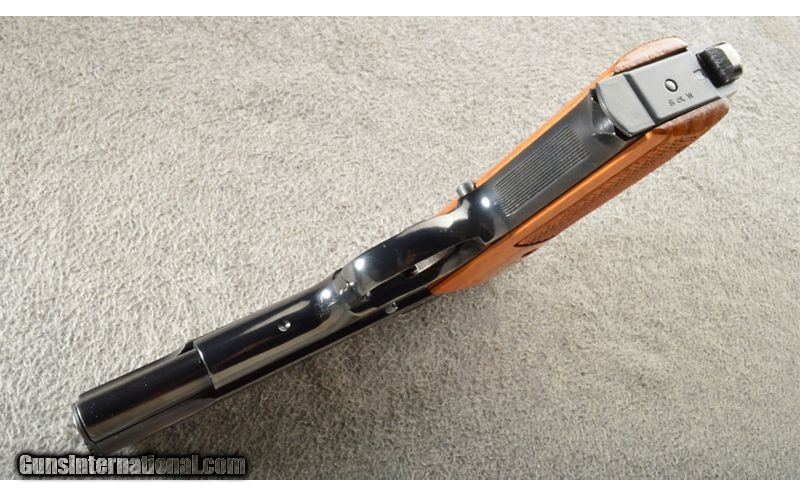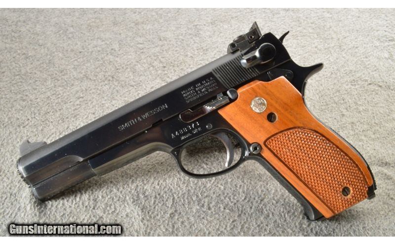 Description: In 1961 Smith & Wesson Model introduced the Model 52 as a match-grade target pistol derived from the Smith & Wesson Model 39. It was chambered in .38 Special Wadcutter for the sport of Bullseye shooting.[2] The first version, known simply as the Model 52, retained the basic trigger mechanism of the Model 39, with the Double-Action function selectable via a simple frame-mounted setscrew, allowing the pistol to be fired in either single-action or double-action mode depending on the setscrew's adjustment.[2] In 1963 the Model 52-1 was introduced with a separately developed single-action trigger system and was manufactured until 1970, when it was succeeded by the Model 52-2. Changes to the 52-2 included an improved extractor and this version was manufactured for 23 years. Overall this one is in great collectors condition. .38 Special SOLD Chambers: 5rd Magazine for 38 SPL Mid-Range. Metal Condition: Excellent collectors grade condition. Wood Condition: Very minor soft dents. Bore Condition: Strong. Triggers: Single trigger for single action fire. Weight: 2 1/2 lbs Sights: "Front fixed raised ramp sight, rear adjustable sight. Item Location: Owatonna, MN |