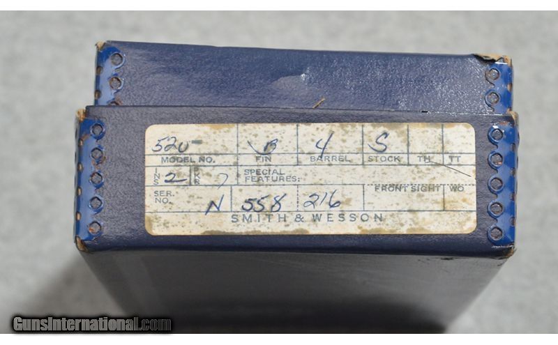 Description: Smith & Wesson Model 520 revolver in excellent condition. This revolver features factory wood grips, notched rear sight, and includes the original box. Minor handling marks with faint cylinder line and wear. SN: N558216 .357 Magnum SOLD Metal Condition: Excellent Wood Condition: Excellent Bore Condition: "Clean, Good Rifling Barrels: 4 Butt Pad: S&W Wood Grips Weight: 2 lb 8 oz Sights: Rear notch Item Location: Fort Worth, TX |