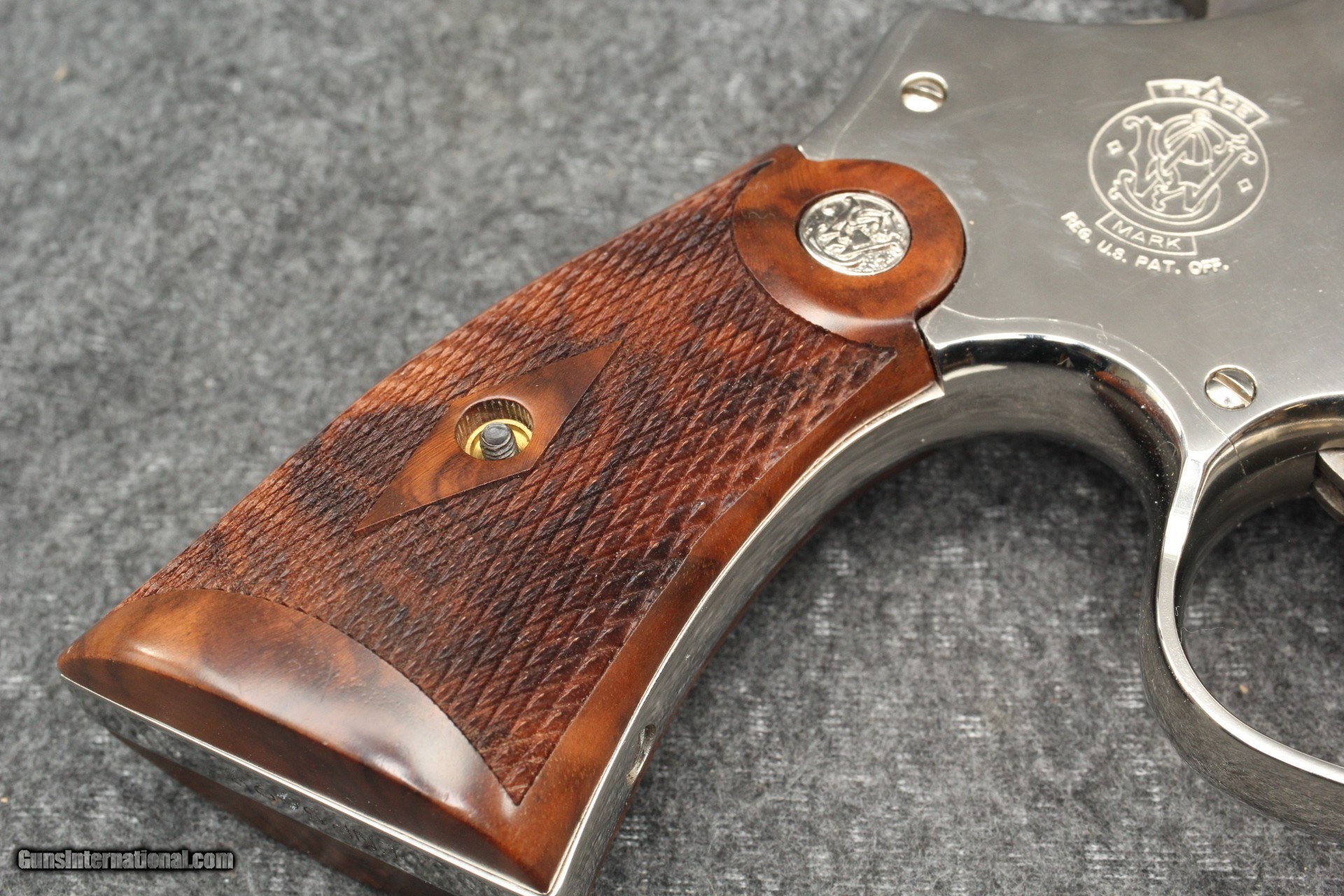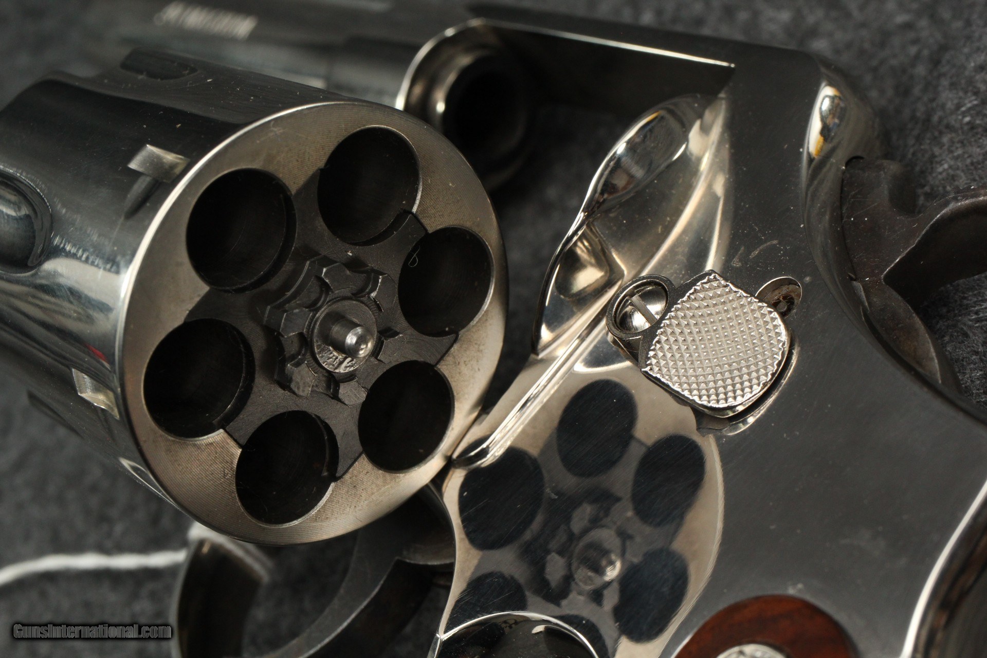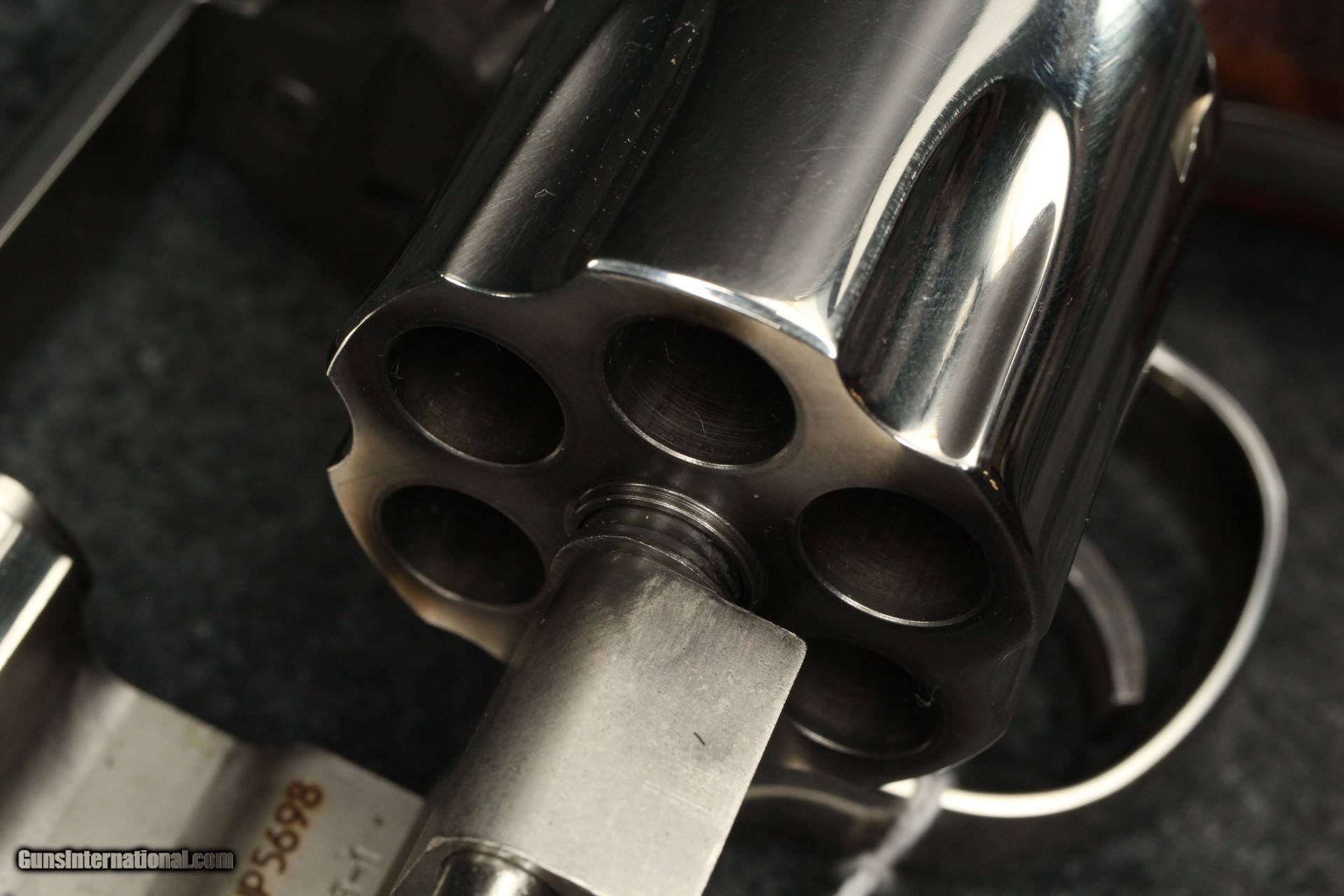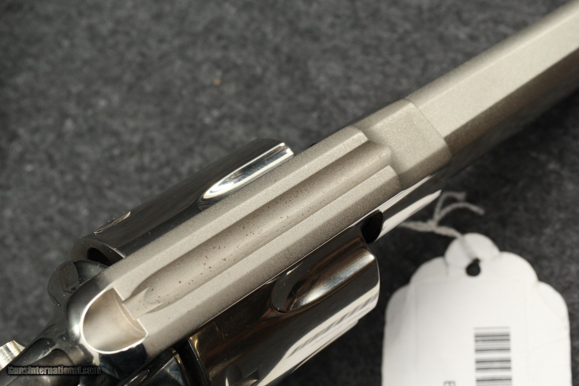 Description: 41 Mag, serial number CNP56XX. 4' barrel, square butt, factory nickel finish. Lock. Overall in excellent condition. Grips are excellent, very little to no wear. Metal is excellent, no flaking in finish. Very light cylinder ring. Bore and cylinders are excellent. Gun is possibly unfired. Does not have factory box. More photos on request. Please add $40.00 for shipping and insurance. SOLD Handgun Caliber: .41 Remington Magnum |
