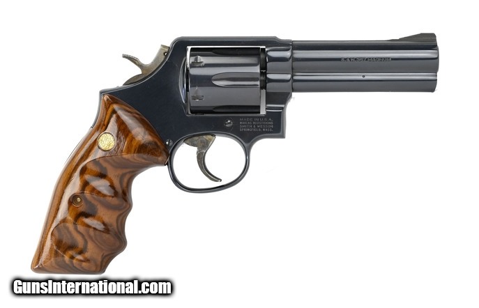 Description: Smith & Wesson 581 .357 Magnum caliber revolver. 4” Blue fixed sight service revolver with wooden combat grips. Excellent condition.