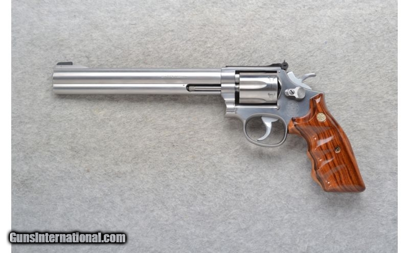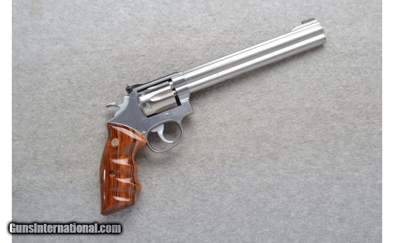 Description: This Smith & Wesson Model 617 is a six shot stainless steel double action revolver in .22 Long Rifle Cal. It has 8.25 inch barrel and smooth grip walnut grips with finger grooves. In overall excellent condition it comes as is in original box. SOLD Caliber Info: .22 Long Rifle Chambers: 6 shot. Metal Condition: Excellent with a couple of minor handling marks. Wood Condition: Excellent. Bore Condition: Excellent. Barrels: 8.25 inch stainless steel. Triggers: Single Action / Double Action. Grooved. Stock: Smooth grip walnut with finger grooves, right thumb rest and brass S&W Medallions. Weight: 3 lbs. 5 oz. Sights: Raised blade front. Adjustable notch rear. Item Location: Richfield, WI |