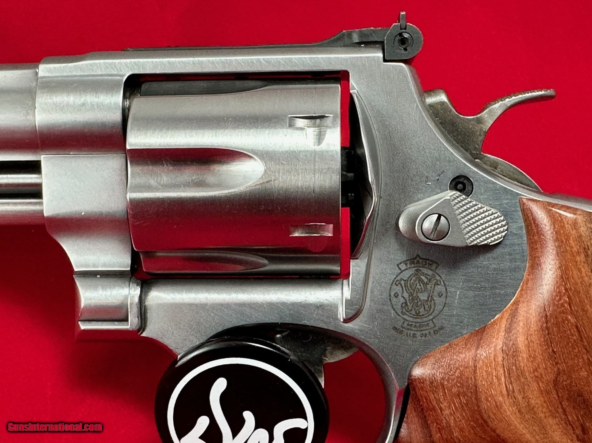 Description: Reduced! Now $849 I have a really nice 6" Smith model 629 in 44 magnum. Look at the pics and see for yourself, it's in near excellent condition. I'm the second owner so I don't know the life history but this has one of the nicest trigger pulls of the many revolvers that I've owned or shot. My suspicion is someone did trigger work on it. Seems safe as I've had no issues with inadvertent hammer falls etc. The previous owner swapped out the original rubber grips for the Jerry Miculek wood grips that it currently wears. I do not have the box, papers or original grips. Please review the pictures and email or call me with any questions. Priced reduced to $849 plus $51.00 shipping. I'm a private collector that's selling my collection that I've built over many years. Thus I'm not a dealer and I'm not a business, so I have a few different rules I live by. I have numerous references and well over 600, all positive, feedback reviews available from other sites. First, if you call and I don't immediately answer the phone, please leave a message and I will return your call as soon as I can. Second, I only accept USPS postal money orders for payment . Contact me if you're interested in trading for 90% silver U.S. coinage or other government minted goId or silver coinage. I cannot accept credit cards and don't accept any other payment types, electronic or paper. Third, being a non-dealer, your receiving dealer must accept from a private individual with a copy of my state issued ID. If he doesn't, there is an additional charge of $50 for dealer fees on my end. No sales to Hawaii. Now priced at $849 SOLD Handgun Caliber: .44 Remington Magnum Manufacturer: Smith & Wesson Model: 629-6 Barrel Length: 6 Condition: Very good to excellent Metal Condition: Excellent Wood Condition: Excellent Bore Condition: Excellent |
