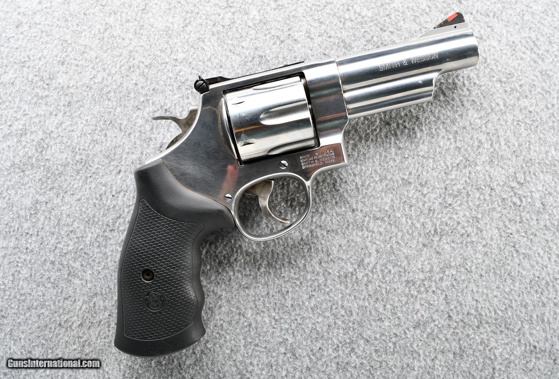 Description: Very good condition with a stainless steel frame and barrel, black finger grooved polymer grips, red ramp front sight. Some light handling and use marks. .44 Magnum Chambers: .44 Magnum Metal Condition: Very good Bore Condition: Very good Barrels: 4" Stainless steel Triggers: Double action/single action Weight: 46 OZ Sights: "Adjustable rear, front blade Item Location: Grand Junction, CO Price: $799.99 Contact Seller |