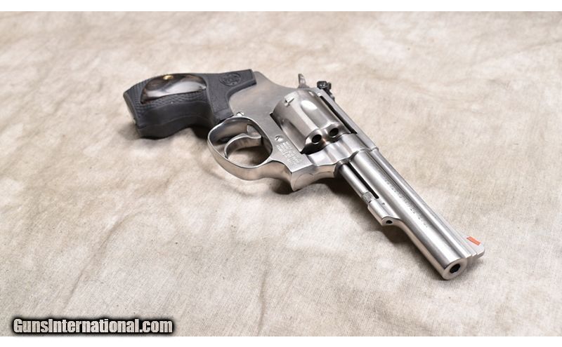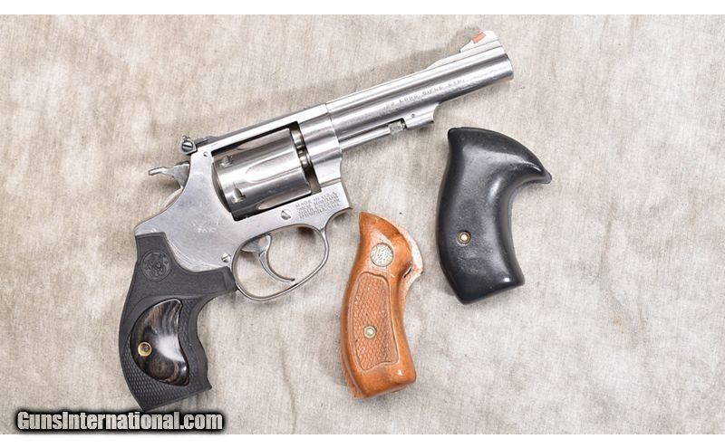 Description: Great J-frame .22 LR featuring all stainless steel construction, 4 inch barrel, and adjustable sights. .22 Long Rifle SOLD Chambers: 6 Metal Condition: Excellent. Wood Condition: Excellent. Bore Condition: Shiny and bright. Barrels: 4-inch Triggers: Factory single/double action trigger. Butt Pad: "Three sets of grips; the original (factory) checkered hardwood, a grey smooth grip, and a black rubber composition with rosewood inserts. Weight: 25 oz Sights: "Serrated ramp with red insert, adjustable notch rear sight. Item Location: Rogers |