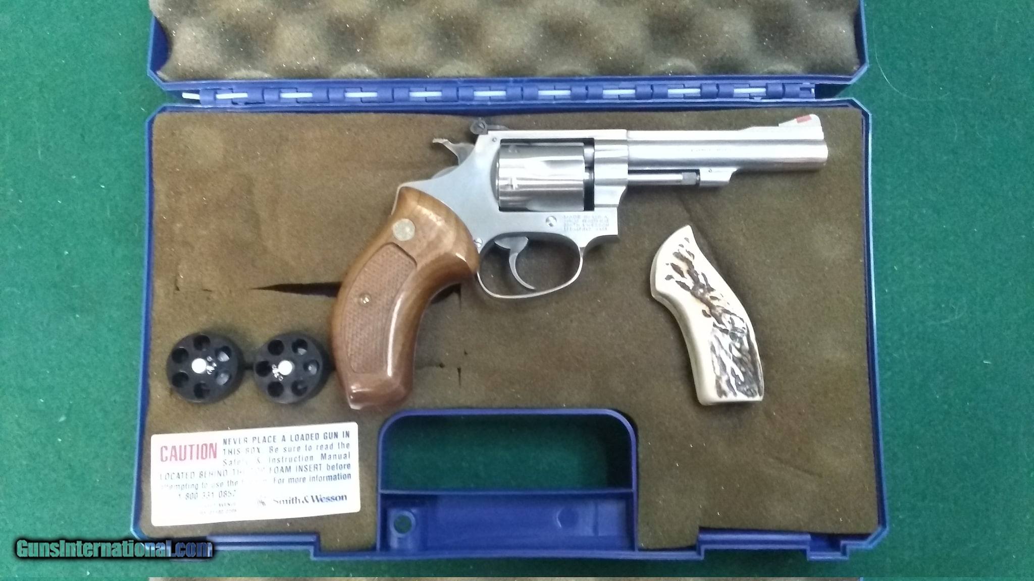 Description: Guns Listing ID: 406111 Smith & Wesson 63-3 - .22LR - 4" Barrel - Stainless Steel - 6rd. capacity. Comes with an extra set of faux stag grips and two speed loaders. Gun is in excellent condition and comes in the original box. SOLD Manufacturer: SMITH & WESSON Model: 63-3 Caliber Info: .22 LR Condition: Used - Non-Certified Barrels: 4 BARREL Finish: STAINLESS |