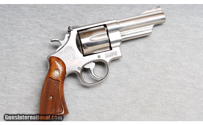 Description: Excellent, light wear and handling marks. Large frame magnum revolver with 4" barrel, adjustable sights, stainless finish, and S&W factory wood grips. .41 Remington Magnum SOLD Chambers: Revolver Metal Condition: Excellent Wood Condition: Excellent Bore Condition: Bright Barrels: 4 Triggers: Double and single action Butt Pad: Wood grips Sights: Adjustable Item Location: La Vista, NE |