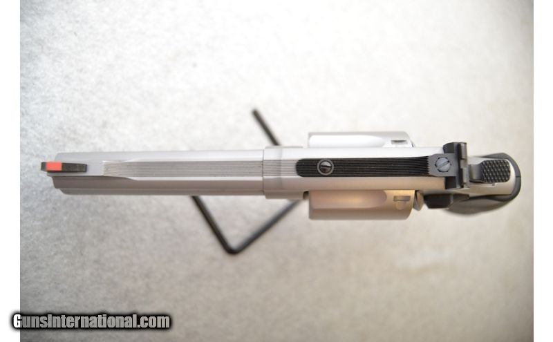 Description: Great condition overall. Minor handling marks to the metal here and there but none are severe. Grips are in excellent condition. Bore is excellent with strong rifling and bright shine. .44 Magnum SOLD Chambers: 5-Shot revolving cylinder. Metal Condition: Very good. Wood Condition: Grips are in very good condition. Bore Condition: Excellent. Barrels: 4½" Heavy profile. Triggers: Matte black metal with smooth surface. Butt Pad: Black synthetic grip. Weight: 2.5 lbs. Sights: Fixed ramp front blade with orange insert and adjustable rear notch. Item Location: Green Bay |