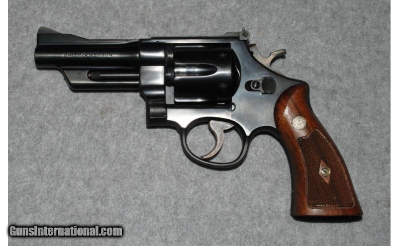 Description: SOLD Manufacturer: Pre 28 5 screw Caliber Info: .357 MAGNUM Metal Condition: Slight handling marks Wood Condition: Very good. Bore Condition: Very good. Barrels: 4 Triggers: Thin grooved trigger. Stock: Factory walnut grips correct for model Weight: 3.5 Lbs Sights: Fully adjustable rear /Blade front. Item Location: Lacey, WA |