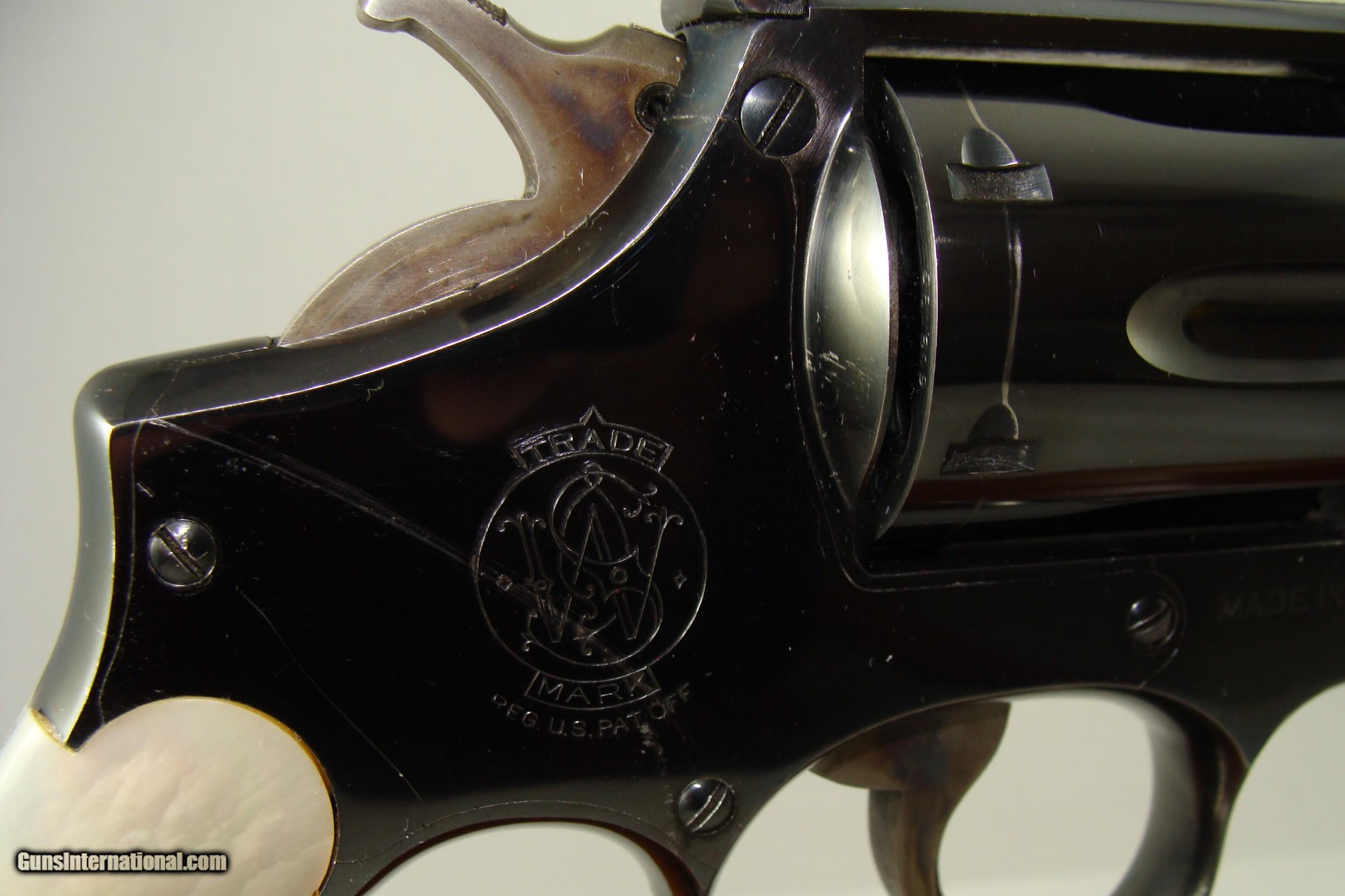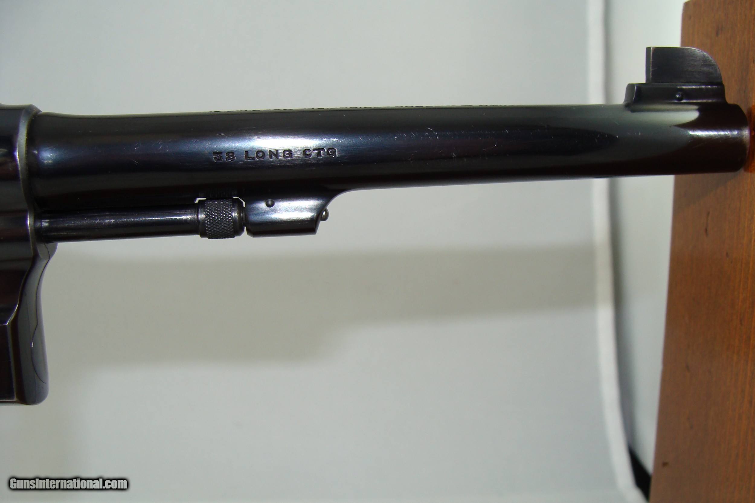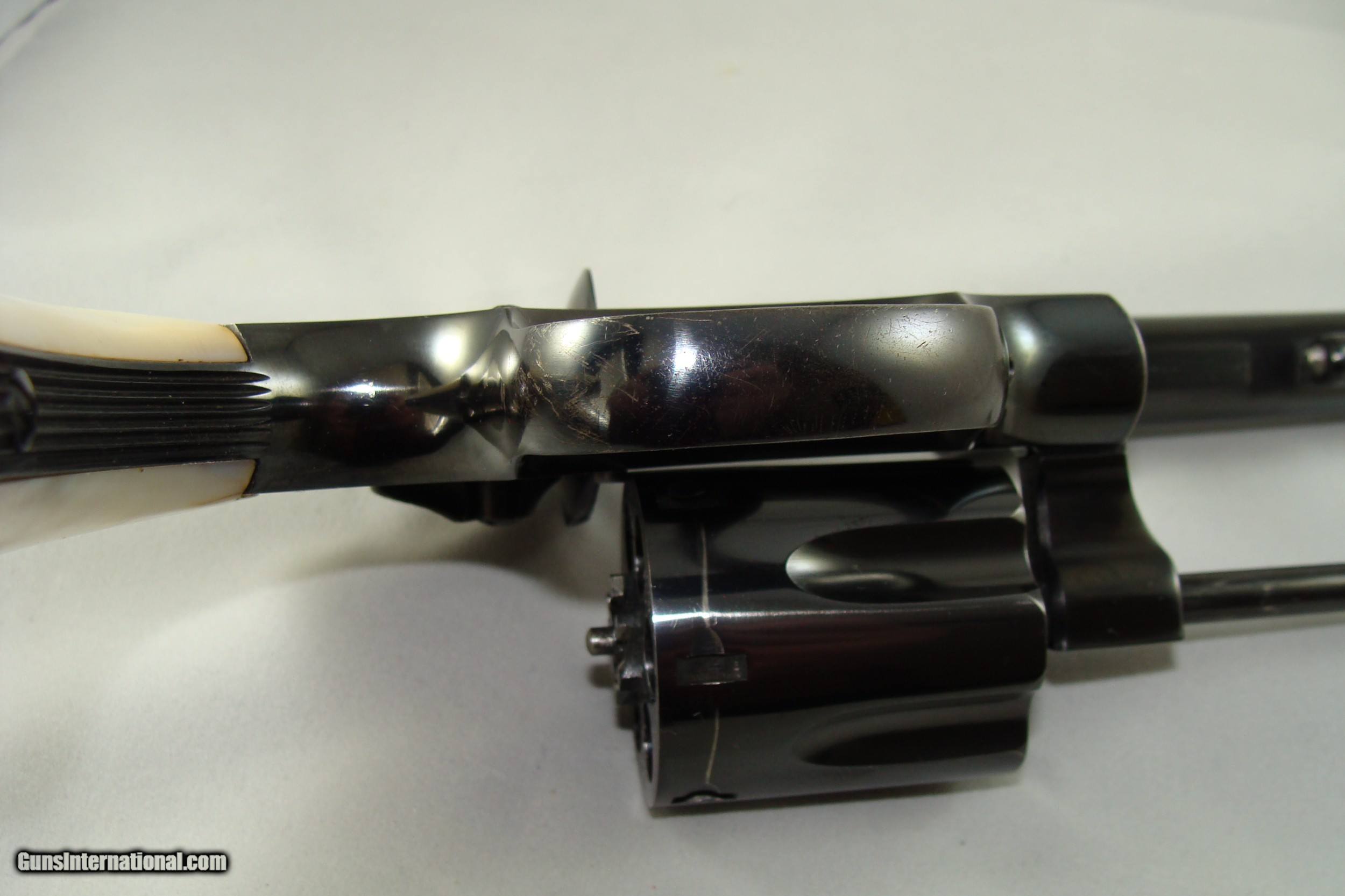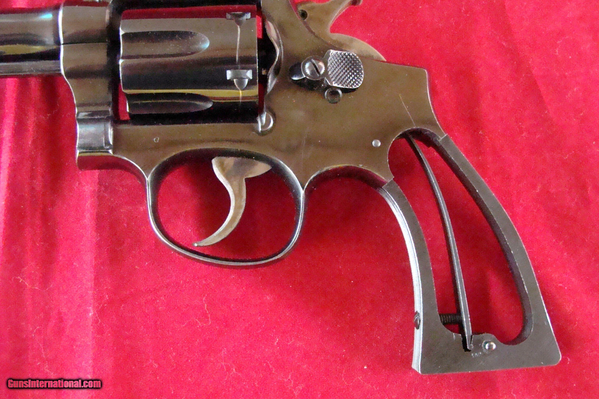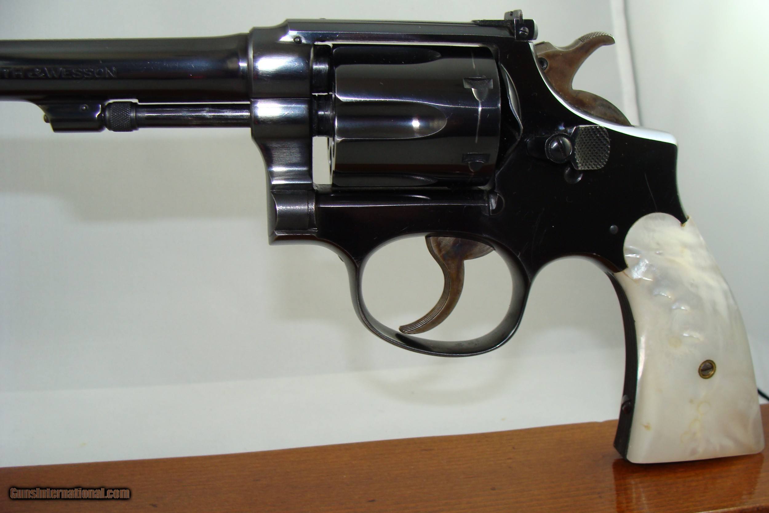 Description: Smith & Wesson K-32 Hand Ejector First Model. Bright bore. Very nice finish. A noticeable scratch on sideplate. Grips are very nice MOP not original. Box is very good condition but not original. With letter. Shipped April 11, 1941. All matching numbers. Only 94 produced making it a very rare Smith & Wesson. A mst have for collectors. No Ca sales. Certified check. Price includes shipping. 3 day inspection with buyer paying for return shipping cost SOLD Curio/Relic: Yes Handgun Caliber: .32 S&W Long (.32 Colt New Police) Manufacturer: Smith & Wesson Model: K-32 First Model Serial Number: 681809 Barrel Length: 6 Condition: Very Good Metal Condition: Very Good Bore Condition: Excellent |