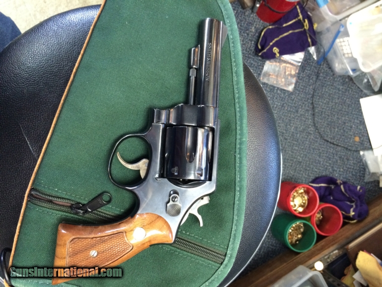 Description: HArd to find Smith & wesson model 58 4" Blue Has sbeen shot . Still very nice. very very small nick in finish of the grip, as pictured , very slight blue rub at the muzzel , over all I say at least 97% my cash price $ 1,150.00 + S&H to an FFL. sorry I am not able to take credit or debit cards at this tome no Pay Pal .SALE PENDING SOLD |