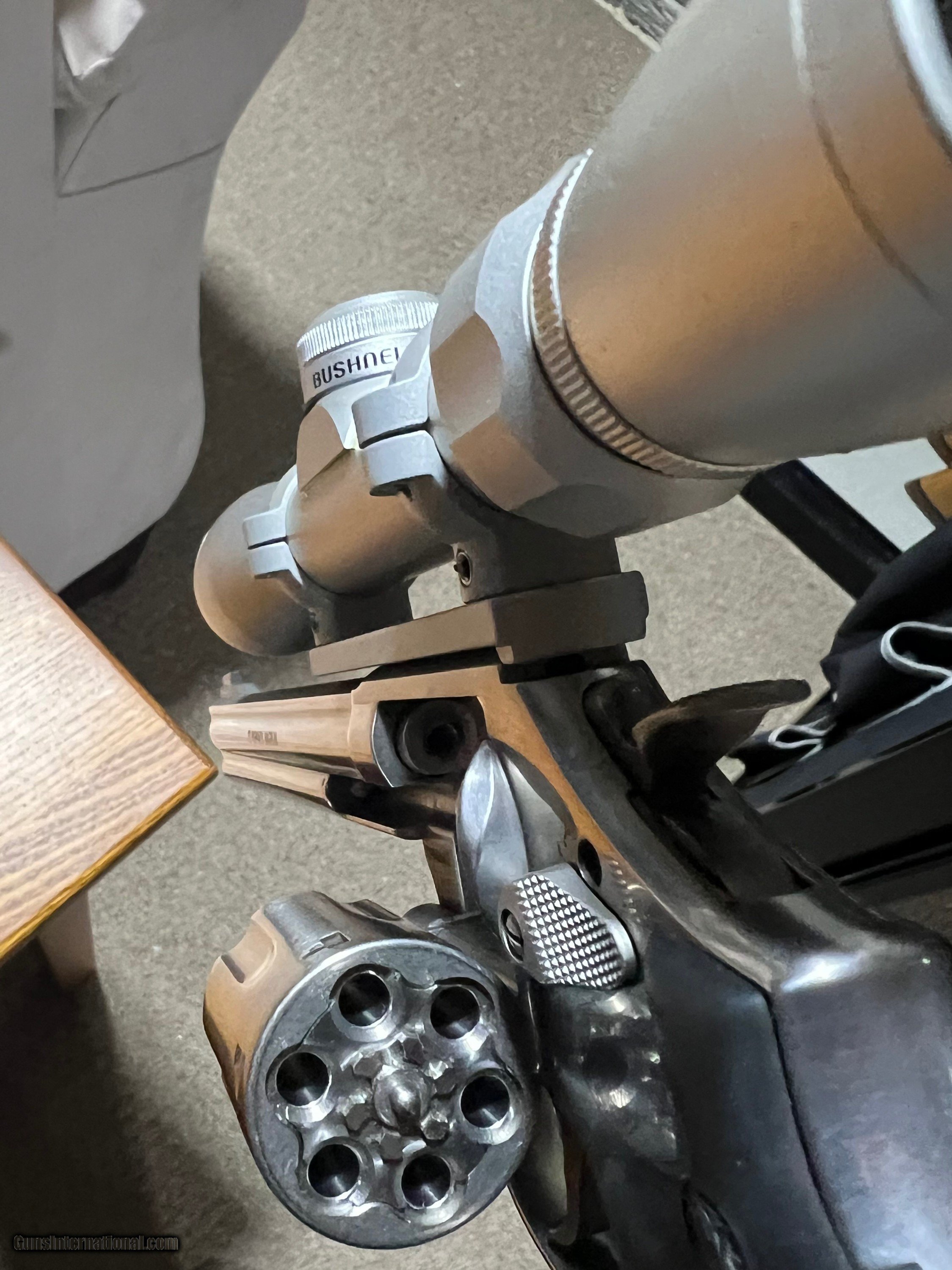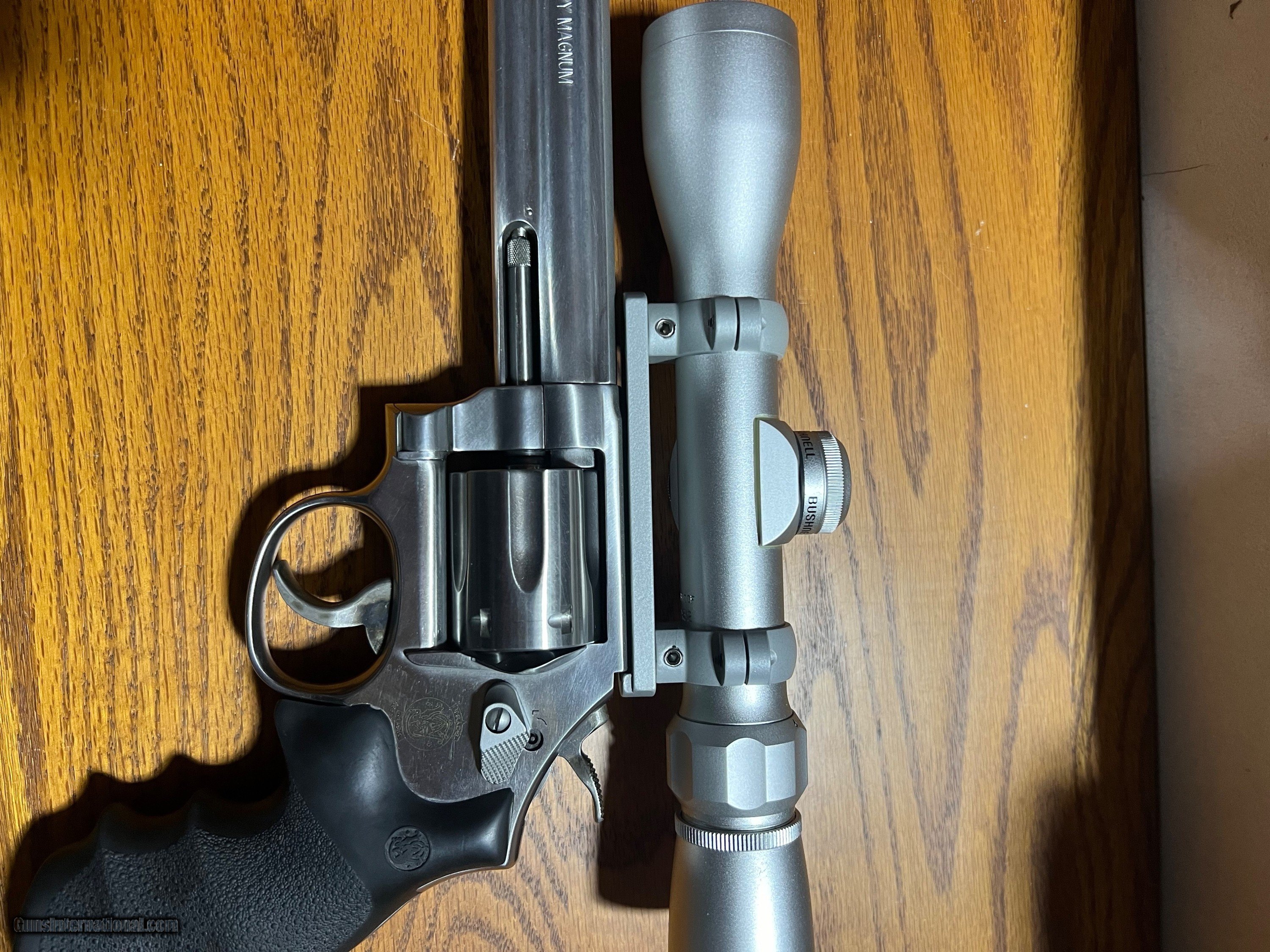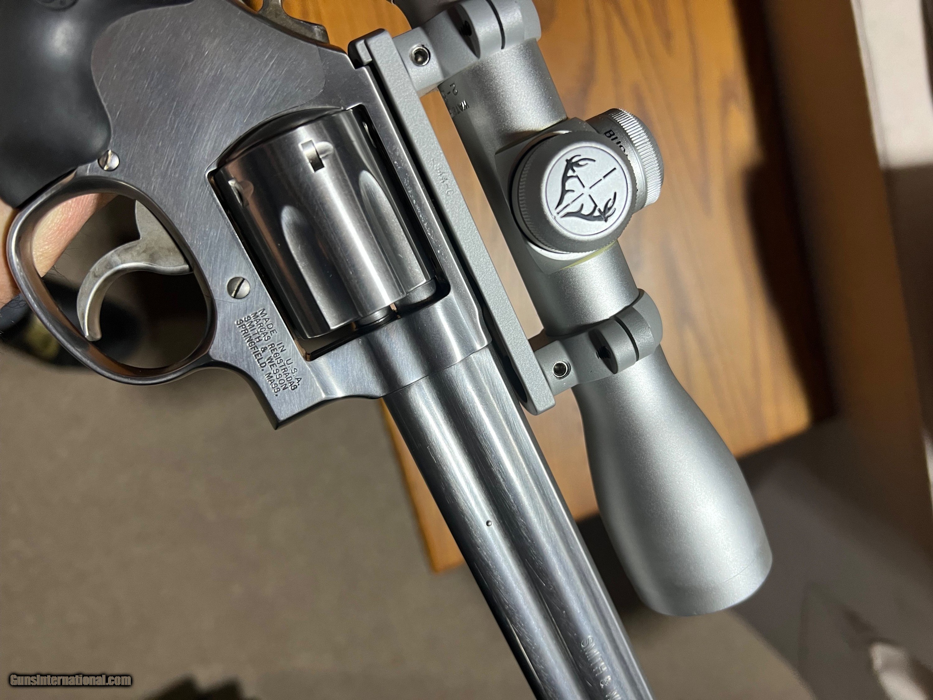 Description: Excellent condition Smiith & Wesson revolver in the rare 17 Hornady. It was only made in 2003/2004. This one comes with the box and paperwork. It also includes a Bushnell 2x6 scope. SOLD Handgun Caliber: .17 HMR Manufacturer: Smith & Wesson Model: M647 Barrel Length: 8 3/8 Chambers: 6 Condition: Great Metal Condition: Great Bore Condition: Great Manufacture Date: 2003/2004 Extras: Bushnell 2x6 scope |