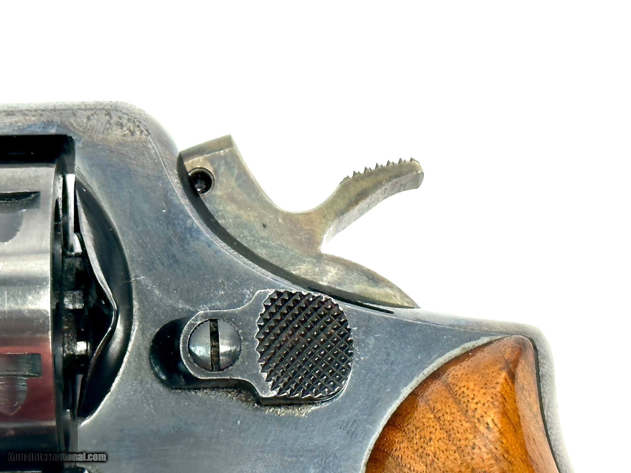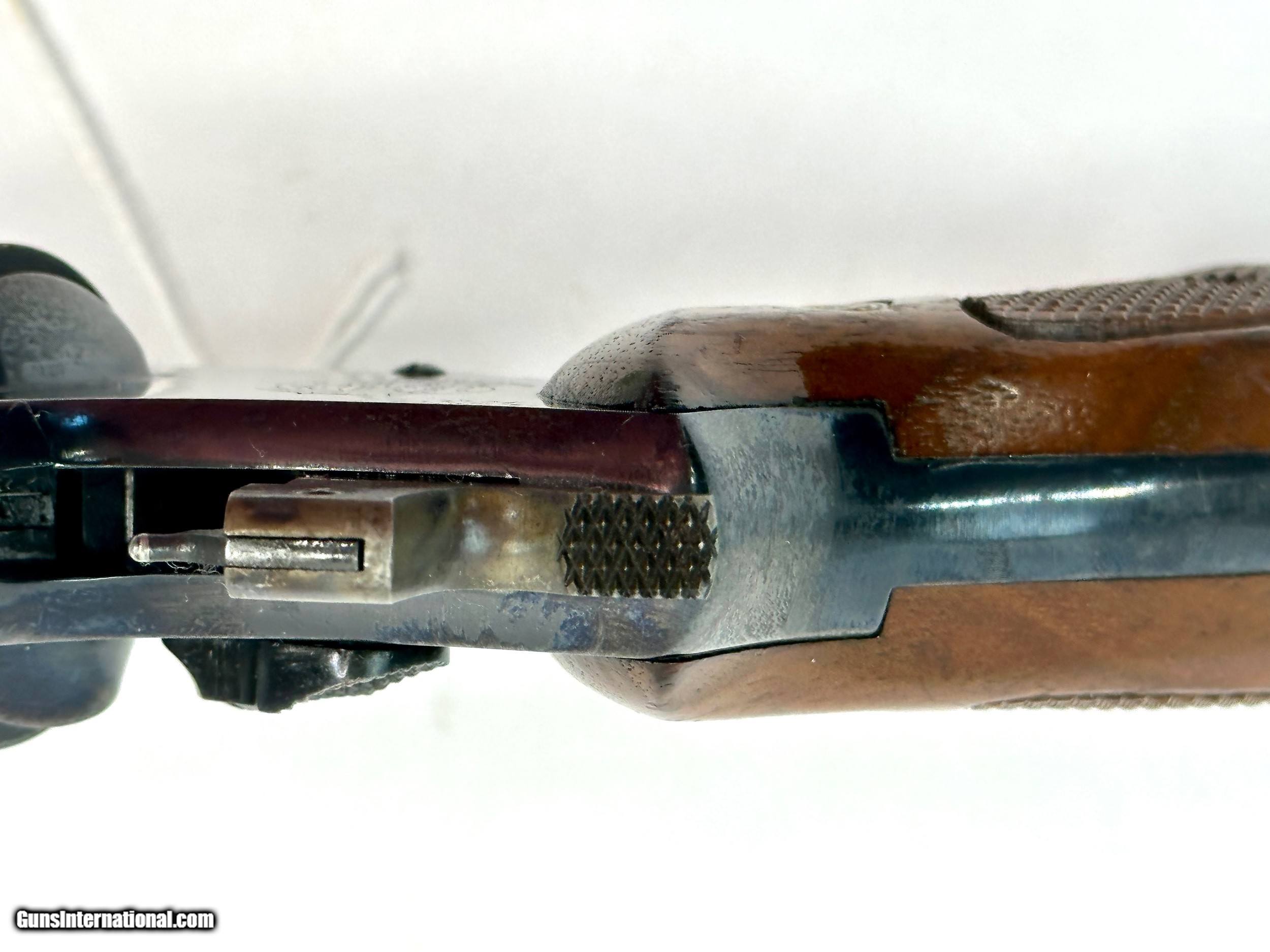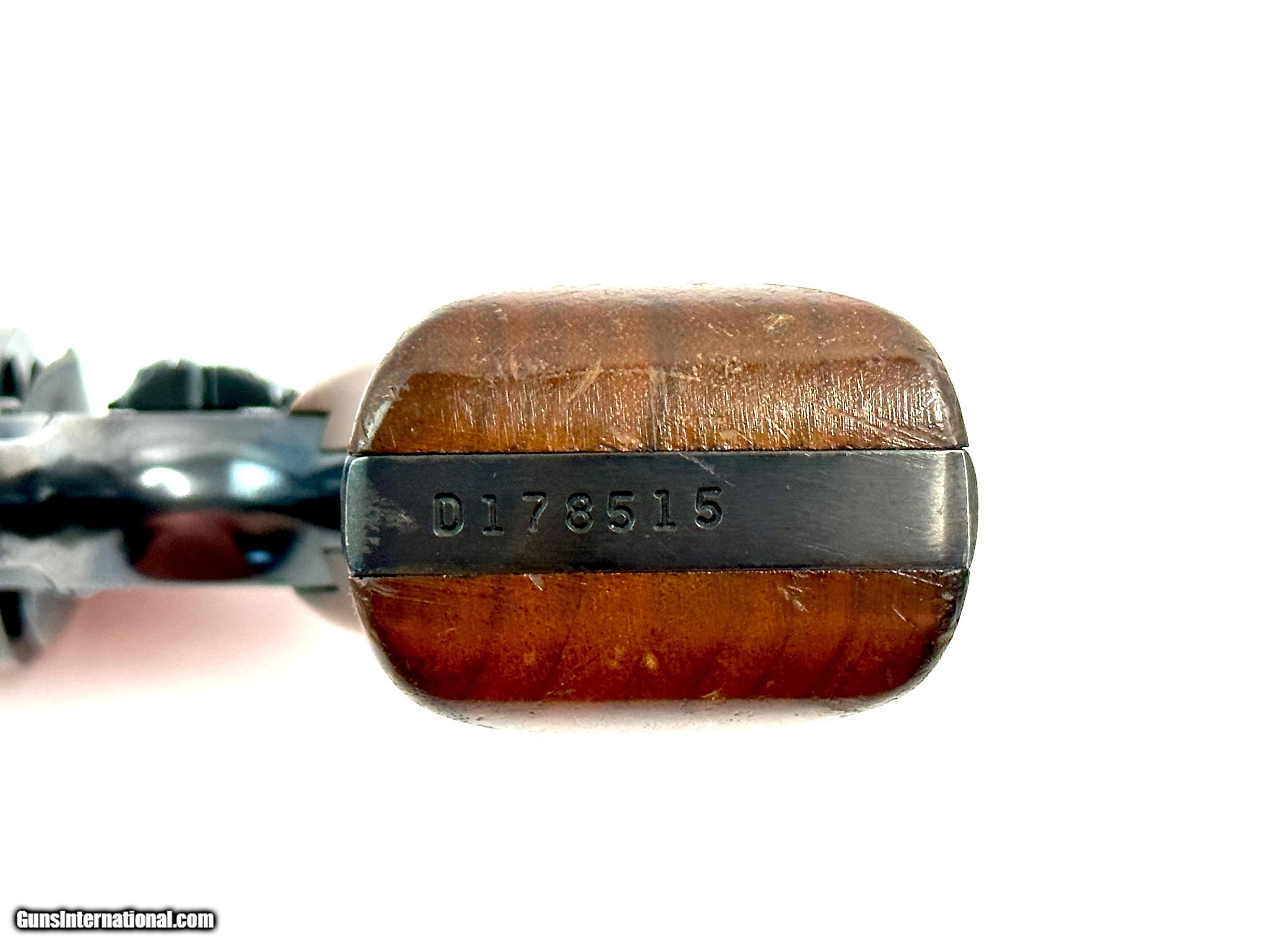 Description: This is a S&W model 10-5 overall in very good condition. There is some freckling above the S&W logo and a few spots on the barrel and tripper guard very minimal overall, on the right side of the revolver and a little holster wear at the muzzle. The cylinder locks up extremely tight. Bright Bore, Bright Chambers, Case coloring on hammer and trigger are 100% Smooth double action pull and crisp single. Barely a score mark on the cylinder from rotation. Maine Residents must pay 5.5% sales tax Price reflects a 3.5% Cash discount Flat rate $35.00 Shipping and handling fee Ships within 24 hrs of receiving all necessary paperwork. (except weekends) SOLD Handgun Caliber: .38 Special Manufacturer: Smith and wesson Model: 10-5 Serial Number: D178515 Barrel Length: 6 Condition: Very Good Metal Condition: Very Good Wood Condition: Very Good Bore Condition: Excellent Action: Single, Double Action Finish: Blued Manufacture Date: Aprox 1962 Extras: Pinned Barrel Item Location: Buxton Maine |
