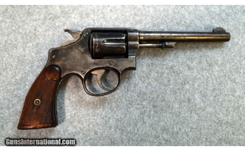 Description: The Smith & Wesson Model 1905, 4th Change was manufactured between 1915 and 1942. This double-action, 6-shot revolver represented another step in design improvement for American handguns. It came with checkered walnut grips and offered improved durability and a smoother trigger pull. This .32 WCF version is relatively scarce as most of the 1905, 4th Change revolvers were chambered in .38 Special. This particular revolver is in fair condition which is not uncommon due to its age. If you are looking for a historical piece to round out your collection, this gun may be for you! This Model 1905, 4th Change revolver is available at a reasonable price so give us a call today. .32 WCF SOLD Chambers: .32 WCF Metal Condition: Fair Wood Condition: Fair Bore Condition: Fair Barrels: 6 Triggers: Smooth Faced Weight: 2.0 lbs. Sights: Factory Item Location: Louisville, KY |