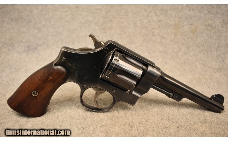 Description: This Smith & Wesson D.A. 1917 ~ .45 acp is in very good condition for its age. These were manufactured from 1917-1920. The metal has some bluing issues and a handful of small scratches. The grips are without any cracks. On the butt it has U.S. Army Model 1917. Very nice gun for any collection. .45 ACP SOLD Chambers: .45 with 6 round cylinder Metal Condition: Very Good Wood Condition: Very Good Bore Condition: Very Good Barrels: 5 1/2 Weight: 4 Sights: Fixed Item Location: Kansas City, KS |