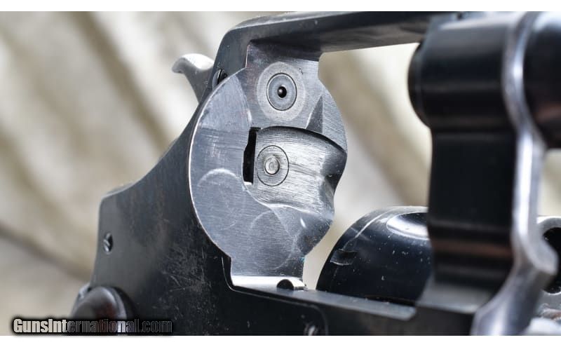 Description: This Model 1917 is in overall fair condition with moderate wear throughout. Own an iconic piece of history and a timeless symbol of American craftsmanship. Whether you're a collector, a history enthusiast, or simply seeking an excellent to your collection, the Smith & Wesson Model 1917 is an enduring choice. .45 SOLD Chambers: 6 Rounds. Metal Condition: Fair with handle marks and wear in the bluing. See photos for detail. Wood Condition: Good with moderate wear and handle marks. Bore Condition: Shiny with good rifling. Barrels: 5.5 Inches. Butt Pad: Checkered hardwood grips. Weight: 36 Oz Sights: Front blade with integral rear notch. Item Location: Rogers |