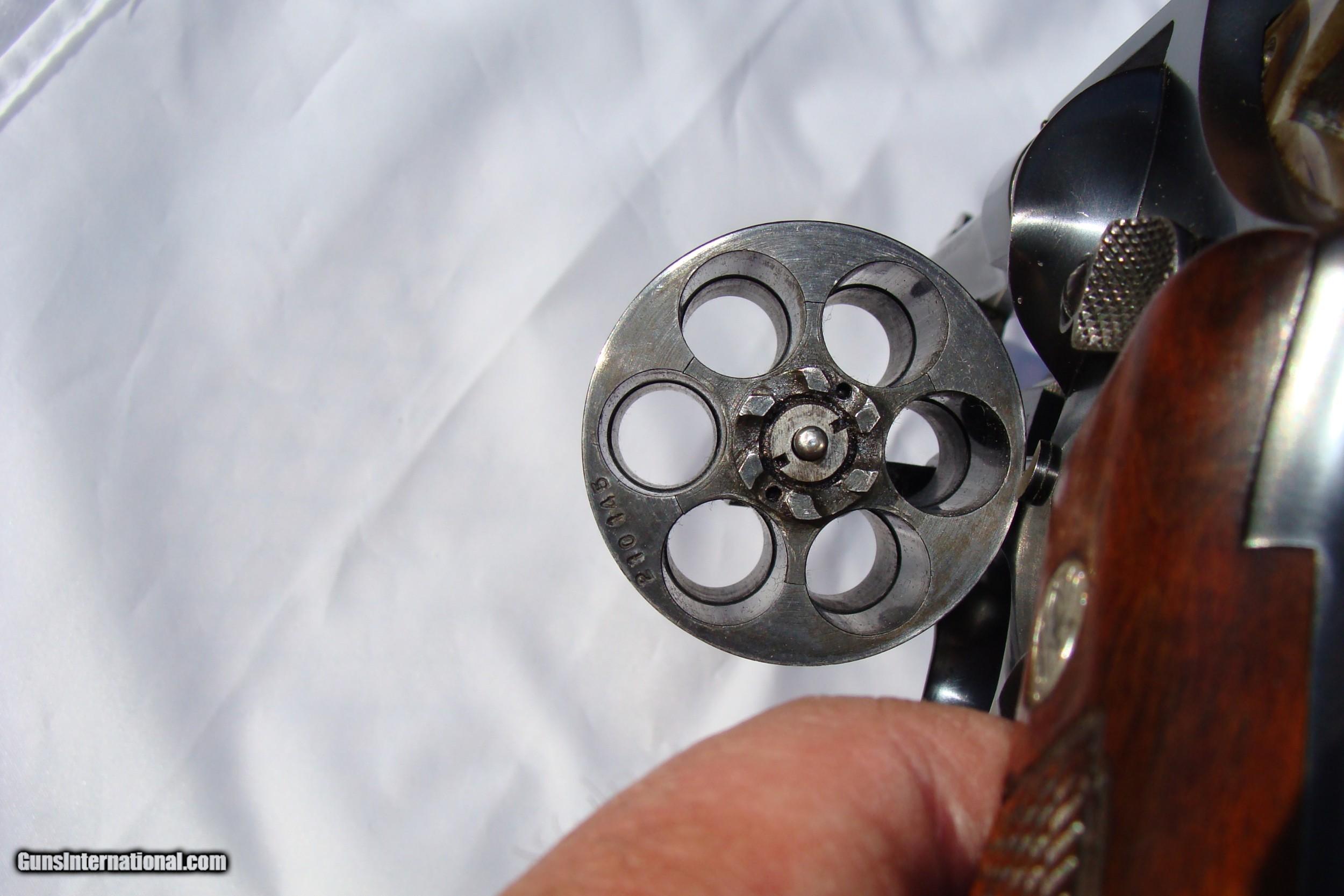 Description: Smith & Wesson model 1917 postwar-transitional. Commercial model .45acp. 5 1/2in barrel, blued, checkered walnut grips numbered to gun. S&W trademark on the sideplate, with lanyard ring. Fewer then 1000 commercial units were produced. Some were produced without the S prefix as is this one. With letter. Shipped June 26,1946 to Bend Hardware Co. Bend Oregon.. Very nice blue finish.There are 2 rub marks on the sideplate, some slight barrel ware and cyclinder drag. Grips show very little ware. Please inspect photos carefully and ask questions or requwst additional photos if necessary. 3 dau inspection with buyer paying return postage. USPS MO or cashiers check. Will ship to your FFl after funds clear. Shipping $50 Will not ship to CA SOLD Manufacturer: Smith & Wesson Model: 1917 Commercial Postwar Caliber Info: .45 acp Bore: Bright Chambers: Bright Condition: Excellent |