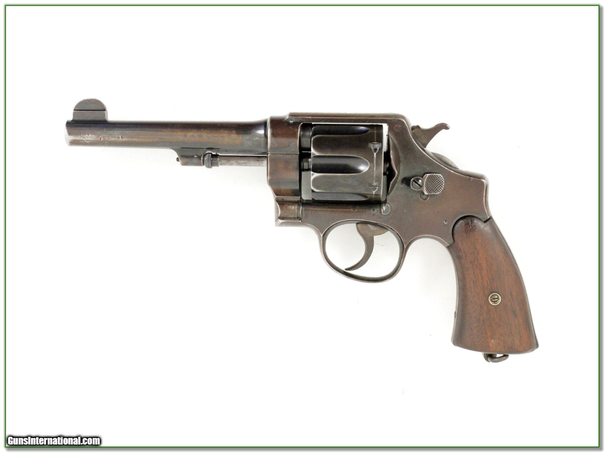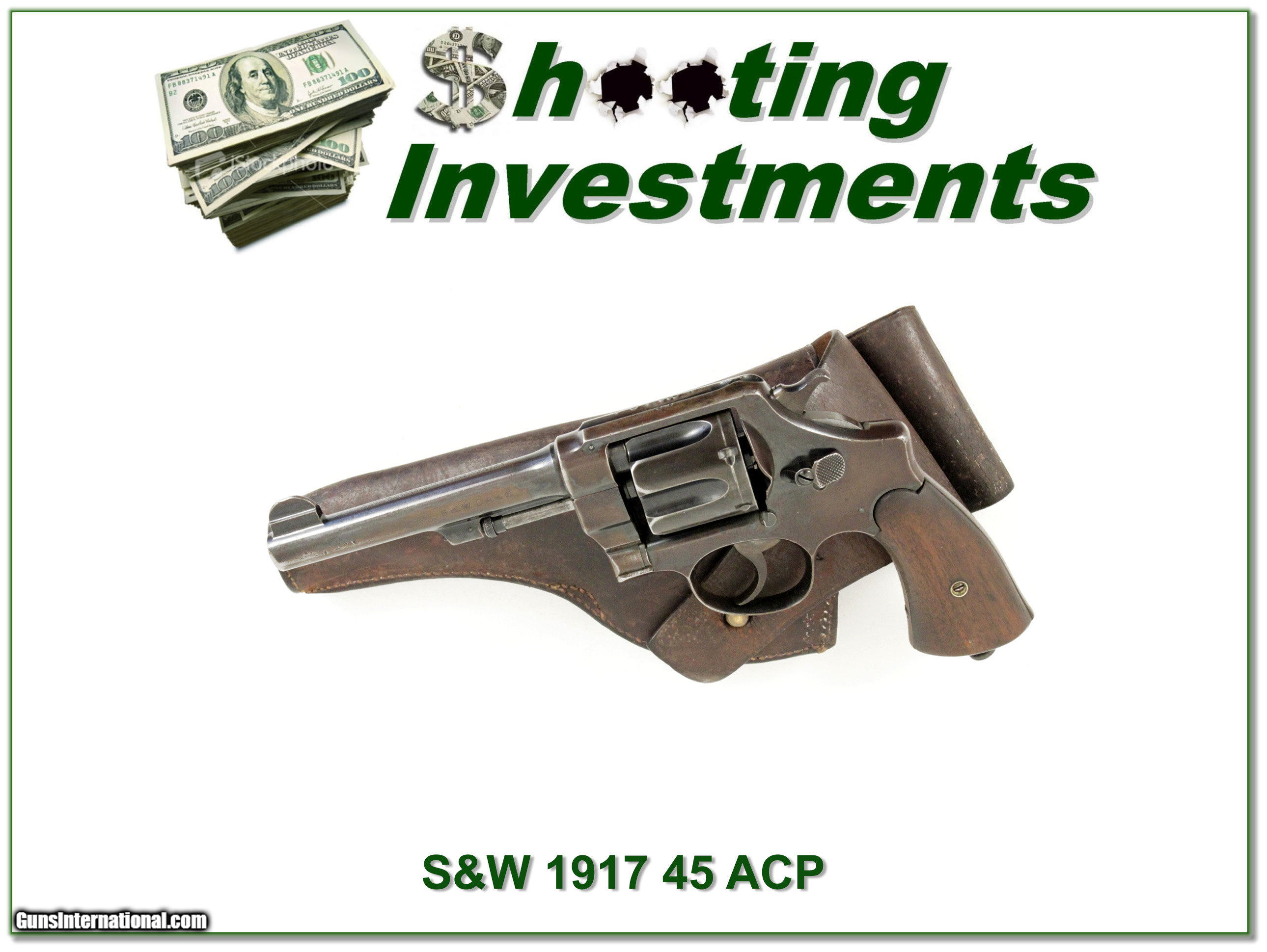 Description: This is a Smith & Wesson Model 1917 in 45 ACP. It is the .45 Hand Ejector Model of 1917. Stamped U.S. Army Model 1917 on the frame, and United States Property marked under the barrel. Early production model with grooved hammer and serial number 12428. Revolver shows honest field use. Also included is a G&K, 1918, AG holster, stamped 77 on the flap. I am selling this one on consignment and as such, lay-a-way can’t be used. It does of course have the standard 3-day inspection. Shipping and insurance is $35. Please email me with any questions or larger pictures. (Consign your quality firearms with Shooting Investments for only 10%! Let me know if you have any you would like to sell!) 17-0589 Payment: Payment is by Money Order, Cashiers Check or Personal Check. I can now also accept MasterCard and Visa with a 3% convenience fee. PayPal can be used for some items but never firearms. Please let us know if you would like to pay via PayPal. Shipping: The shipping charge will be listed in each description. It is $35 for most guns. Some heavy guns or those insured for over $2000 will be higher. Shipments to Alaska and Hawaii are higher because air shipment is required. Most firearms are shipped within 5 days of receipt of payment. We prefer shipping at the beginning of the week to avoid firearms in transit over weekends. We package all shipments carefully and insure them for the full purchase price, rounded up to the next $100. In the unlikely event that damage occurs, it is important that you save all packaging material for the claims process. Optics are shipped Priority Mail and most other non-firearm shipments are shipped First Class. Returns: Our return policy is simple. If for any reason you are not pleased with your purchase, you may return your item for a refund. The only exception is ammunition, it cannot be returned. It is important to us that you are happy. Guns cannot be fired or dissembled before returning them and must be returned in the same condition as received. Notification of a return must occur with-in 3 days of receipt at your dealer. Shipping, convenience and dealer fees are not refundable and are the responsibility of the buyer. Lay-a-way: If needed, we offer a 60 day lay-a-way option on most firearms. It is 1/3 now, 1/3 in 30 days and 1/3 in 60 days. Lay-a-way firearm sales are final. Consigning your firearms with Shooting Investments: We will help you get top dollar for your firearms. While most local guns shops charge 20% or more, our fee is only 10% with a minimum of $50. At your local gun shop it might take months to sell. Selling on-line provides instant access to thousands of interested buyers. You won’t find any other on-line dealer willing to sell your firearms for only 10% or listing every gun on 4 separate s. Selling through an House typically costs the seller 15% and the buyer an addition 15% (so 30%) and you have to wait several months to sell and longer to receive funds. If properly priced, we will sell your firearms in a week or two. Send us an email or give us a call and we’ll explain how easy it is for you to get top dollar. Trading: We collect guns and usually just trade for guns we want to add to our collections. We often sell guns for others wanting to purchase one of ours. We find this the most fair to both of us. Our Commission is only 10% and we hold the gun you want until yours sells. Please contact us if you want to sell one of yours to buy one of ours. Help for California Buyers: We are happy to ship to California. It is the buyer’s responsibility to make sure any item you buy is legal in your state. We are also happy to help with your purchase of a firearm from someone other than us. If you see a gun you would like to buy but the seller can’t or won’t ship to California we can help. You buy the gun and have it shipped to us. We’ll then ship it to your California dealer. The cost for this service is only $30 + shipping. Let me know if we can help! SOLD |