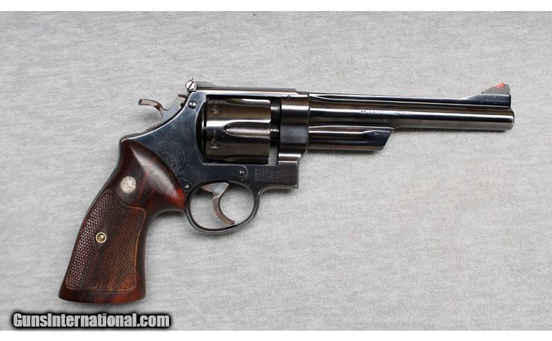 Description: Smith & Wesson Model 1950 .44 Hand Ejector Pre-24 in .44 Special. It is fitted with the standard 6 1/2 Inch 44 Special barrel. The sights are the standard target style sights. The grips are the original Smith & Wesson factory "Coke Bottle" style of grips. The color cased hammer and trigger show strong color. The bore and chambers are bright and clean. There is the usual drag line between the cylinder stops. The original bluing would rate a 97% or better condition. The grips are in excellent condition. This pistol is a very a very desirable Smith & Wesson Target Model. .44 S&W Special SOLD Metal Condition: Excellent Wood Condition: Excellent Bore Condition: Bright Barrels: 6 1/2 Inches Triggers: Target Sights: Target Sights Item Location: La Vista, NE |
