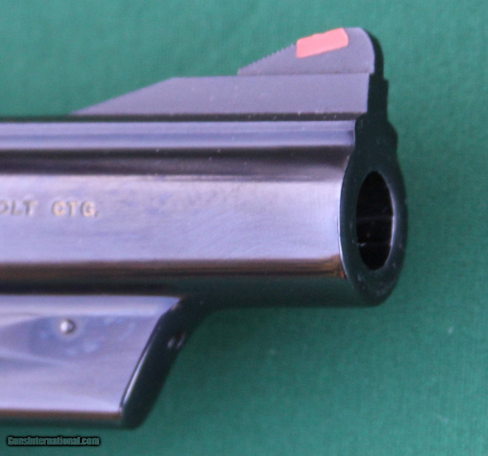Description: Smith & Wesson Model 25-5, .45 Long Colt, double-action revolver, with a 4-inch barrel, original target grips, target hammer, target trigger, open adjustable rear sight, and a bright blue finish. The revolver has a three-screw configuration, with one screw (#3) under the stock. Based on its serial number, the year of manufacture is between 1970 and 1972. There is no box or other accessories with this revolver. The overall condition of this gun is 98+ percent. Other than the normal cylinder-lock scar, there is one issue with metal finish - on the right side of the frame, just in front of the cylinder, is what I think is a manufacture flaw. It is smooth to the touch and is hardly noticeable, except in the right light and at the right angle (see photo with yellow annotation). There are two issues with stock. 1) On the left-side stock, right below the grip screw, there is a 3/4 by 1/8-inch area were the top coat is rub down to, but not into, the wood (see photos with yellow arrow). 2) On the bottom of the right-side stock, there is a thin 3/4-inch scratch (see photo). Aside from these two issues the rest of the stock is perfect, with no other blemishes, mars, stains, etc. The checkering is deep and crisp, with no sign of wear. Though I cannot guarantee this, the gun looks as though it has never been fired since its original purchase. The cylinder lock ring is very light and the front of the cylinder shows no carbon stain, which is almost impossible to entirely remove once a revolver has been fired. See the photos of the cylinder ring and the front of the cylinder. There are no other blemishes, mars, stains, etc. anywhere else the gun. Unfortunately, as mentioned above, there are no box, accessories, or owner’s manual. The photos are high resolution, so zoom to see details. Please excuse the oil smears in the photos. Contact me for additional photos of any area you would like to see or see better. The buyer pays USPS Priority mail ($25) and insurance, if desired. I will accept a personal check which I will hold until it clears. I will also accept a USPS money order which I do not have to hold, as it clears immediately. Contact me for additional photos of any area you would like to see or see better. The buyer pays USPS Priority mail ($25) and insurance, if desired. I will accept a personal check, but will hold the gun until it clears. I will also accept a USPS money order which I do not have to hold, as it clears immediately. I will accept other type money orders, but will hold gun until it clears. SOLD Serial Number: N657646 |