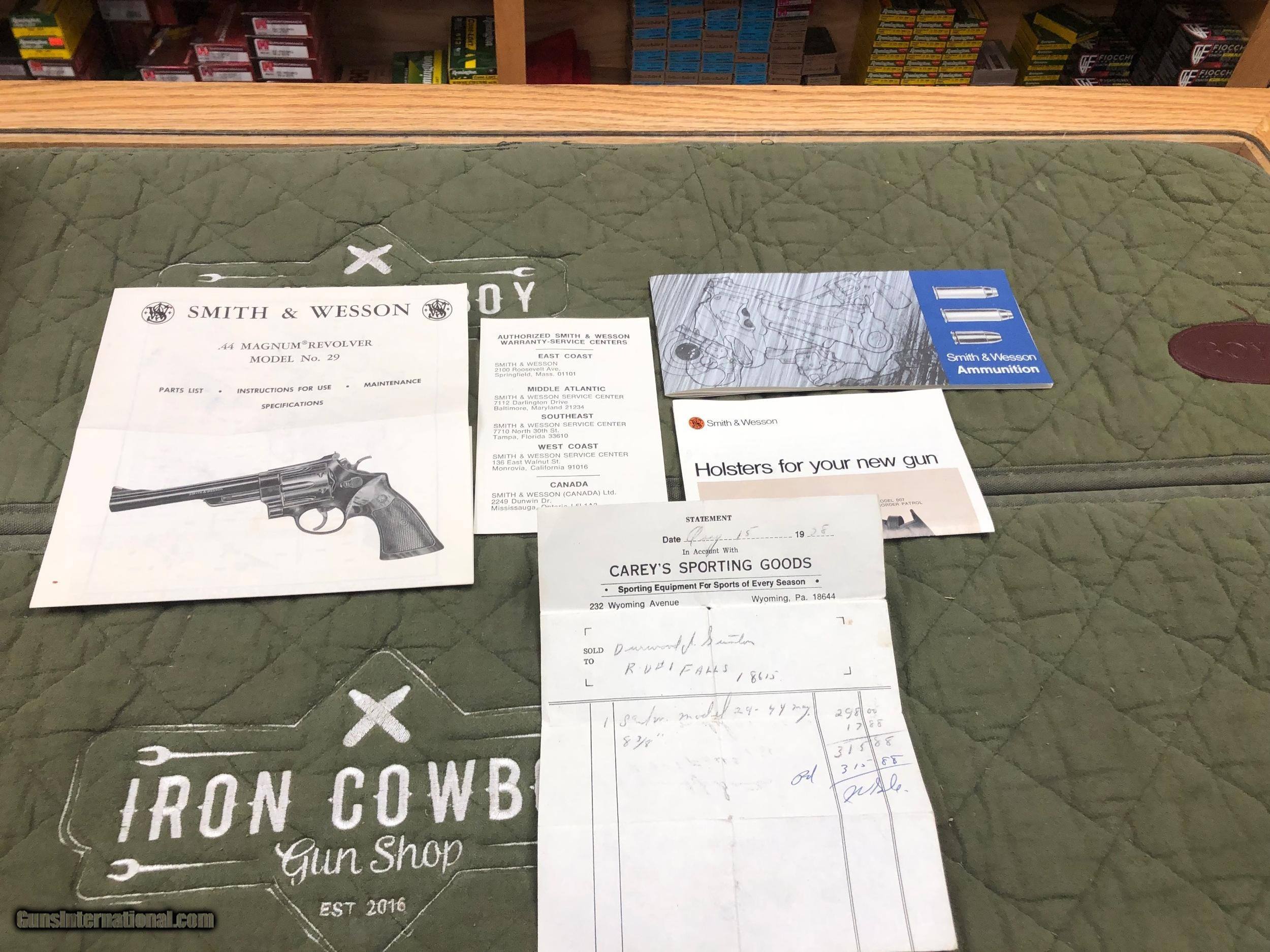 Description: Up for sale is a Smith and Wesson 29-2. This pre-lock Smith is chambered in .44 mag and sports a 8 3/8” barrel. Revolver is in excellent condition. There are some faint scratches in the Nickel finish, but nothing major. Collector grade, highly desirable. Pictures tell the story.Call the shop 570-733-2042 with any questions. I stock a vast array of Caesar Guerini, Fabarm, Syren, Blaser, Merkel, Nighthawk Custom, Cabot Gun and many more. It is impossible for me to list everything I will special order you anything your heart desires. Thanks for looking. WHY IRON COWBOY? Buying a fine gun is not shopping cart transaction. Buying from Iron Cowboy means buying a gun from me. It means buying from someone as passionate as you about fine guns. I want you to get the right gun both for you and your application, and my advice reflects what I feel is in your best interests. No clerks, no ‘other’ salesman – just me. Odds are we will have a discussion on my shooting experience with the gun you are after, and every transaction gets my personal best. Thank you, as always, for looking. GROWTH THROUGH SERVICE Everyone is a customer at some point. I’ve taken the good from my experiences and apply it to my transactions. I’ve taken the bad and sworn to never pass that same experience on to my customers. I strive to act the way I would respect someone else for acting. In this way, Iron Cowboy differentiates itself with growth through service and repeat business. It’s my commitment to you, my customer. Iron Cowboy Gunshop, LLC Edward Kondraski III (570) 733-2042 SOLD |