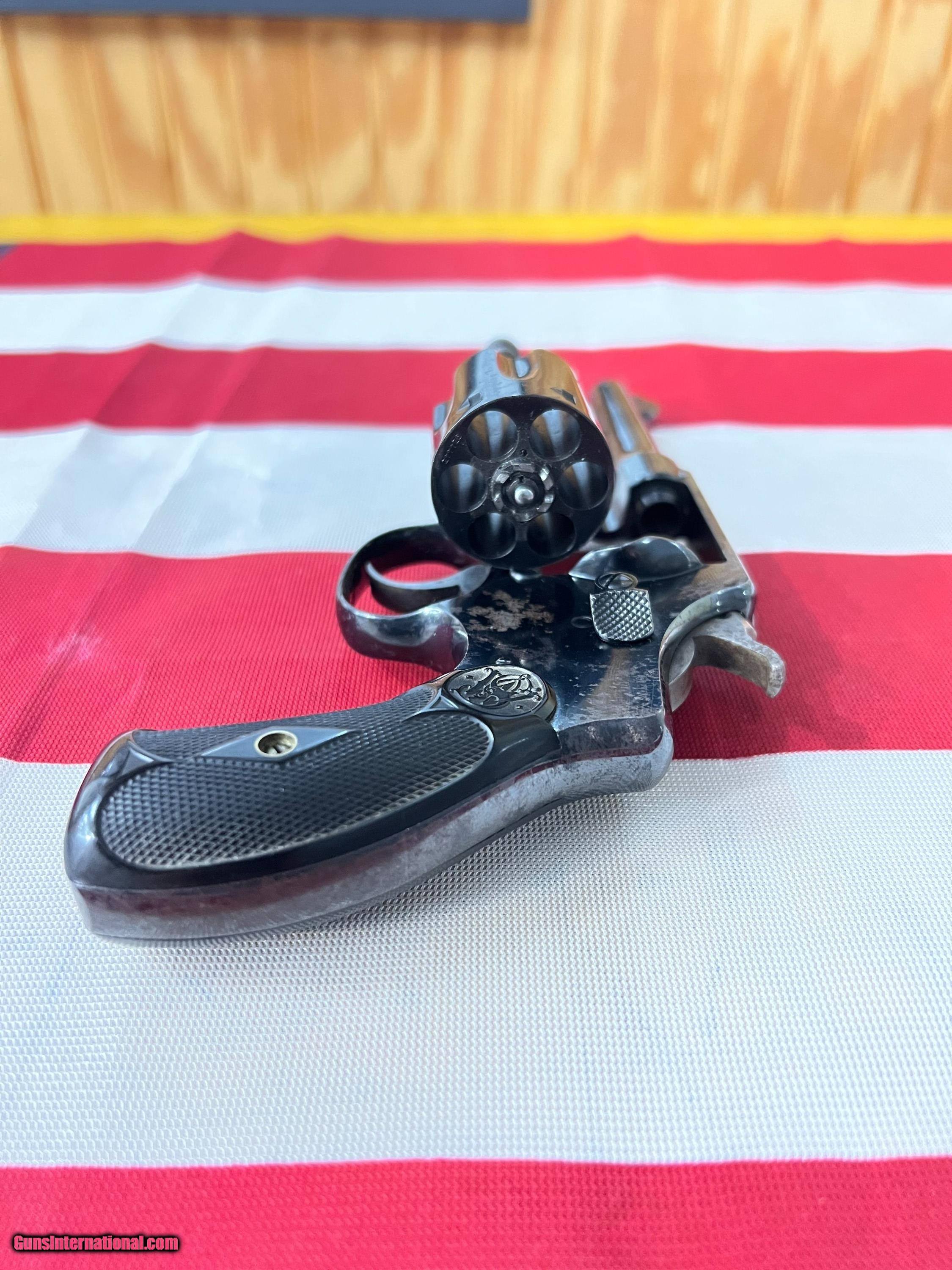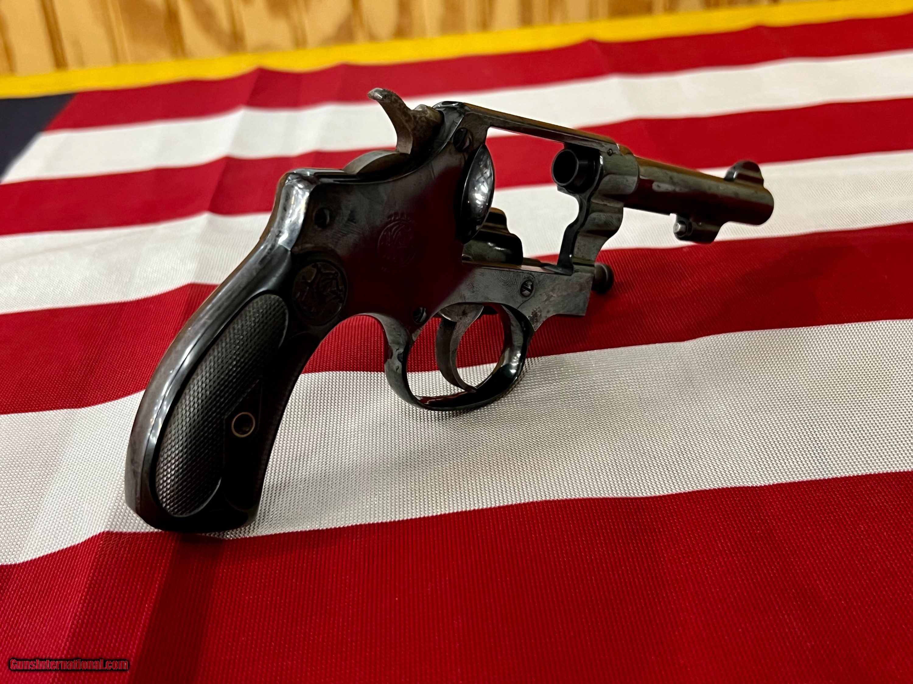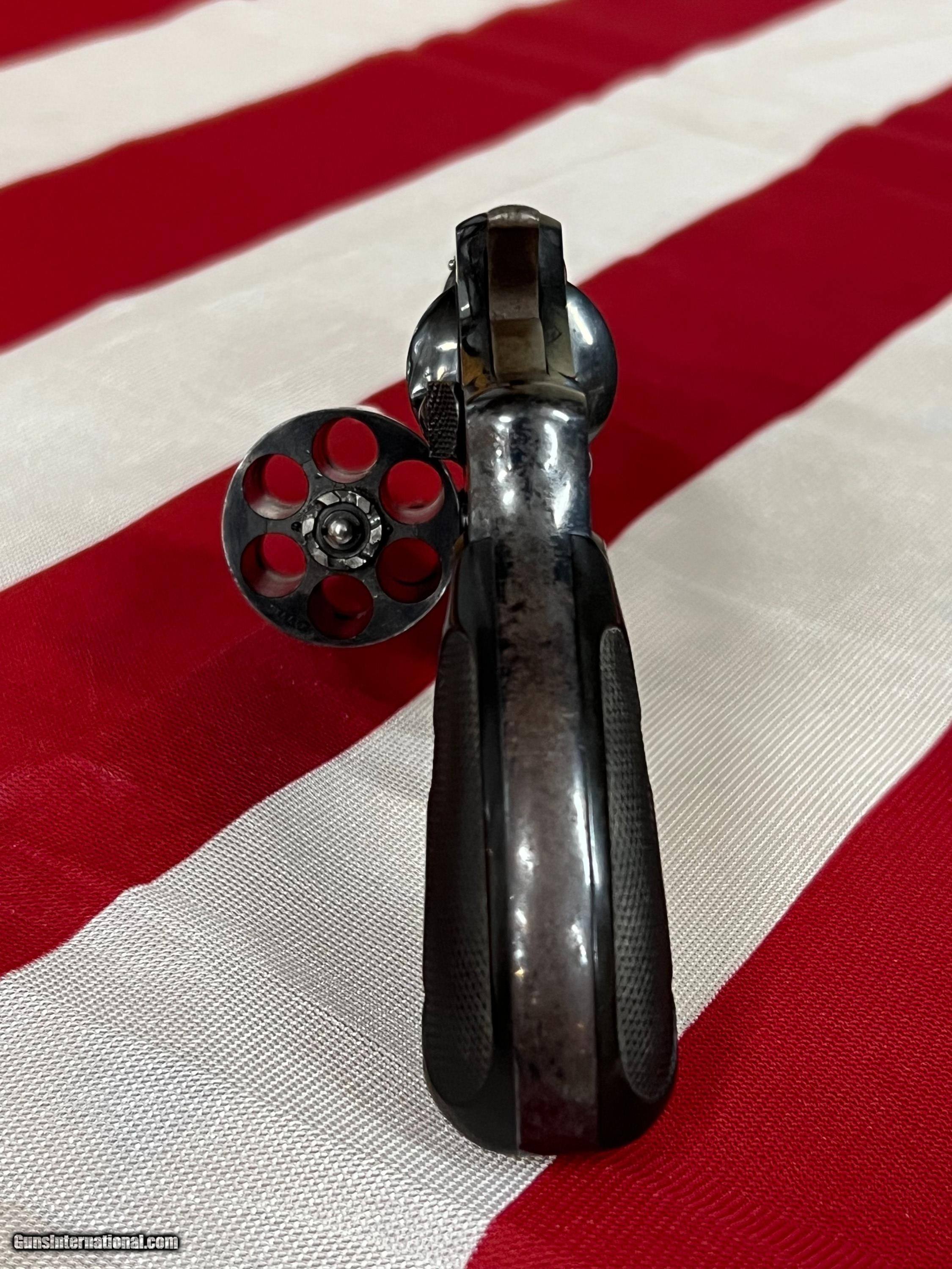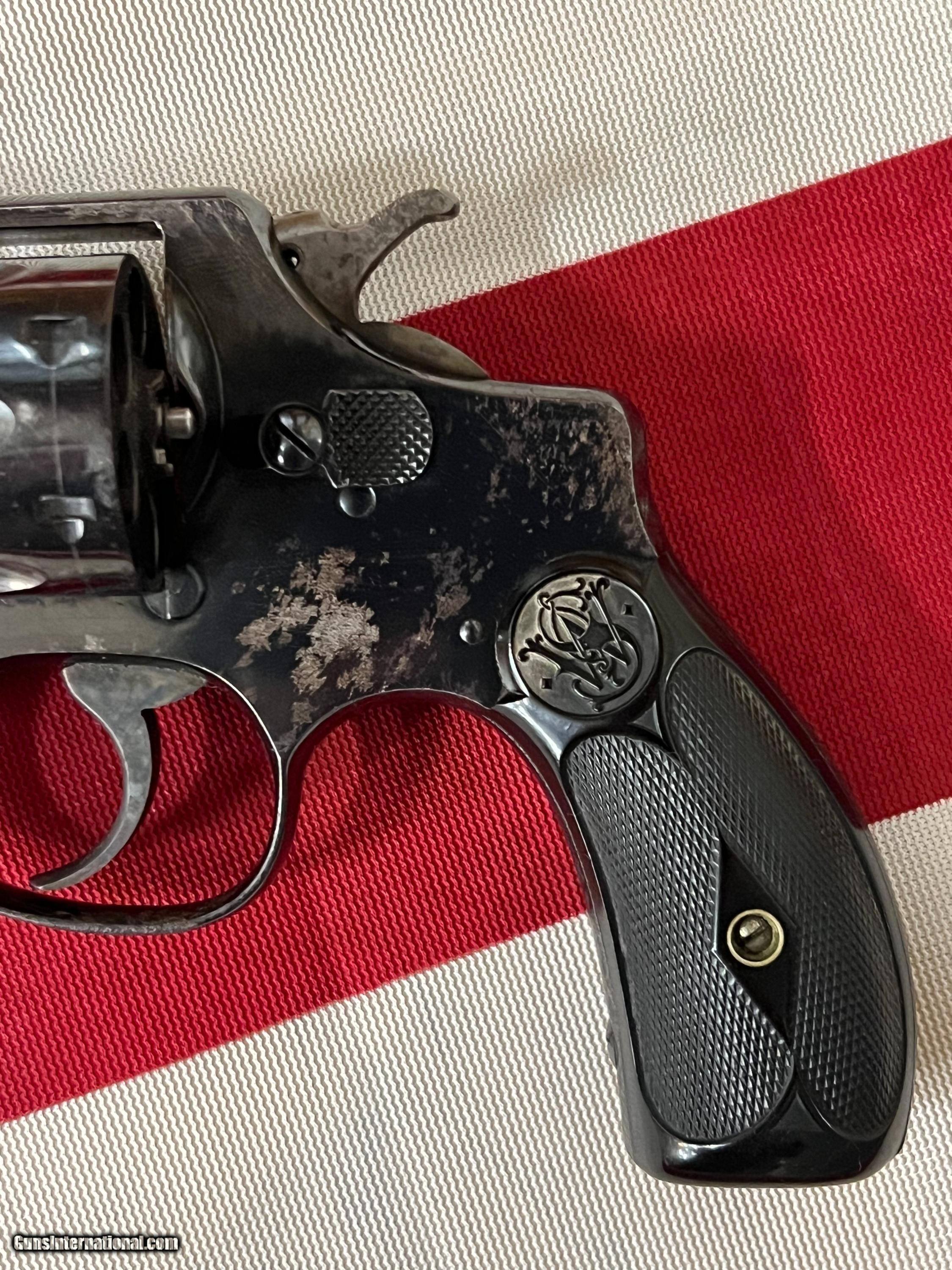 Description: Please read the Additional Terms of Sale and Item Characteristics for important listing details. You must contact your FFL transfer dealer and have them send a copy of their license with your name, username, the item and order numbers to the seller. NO RETURNS OR REFUNDS ON GUN SALES. Smith & Wesson .32 Long, Hand Ejector, 5th Change, Model of 1903 chambered for .32 Long CTG and manufactured between 1910-1917. This double action revolver had a blued finish that has mostly settled into a gray patina having some speckling with a 4 inch barrel, round butt frame, and 6 shot fluted cylinder. The black hard rubber grips are totally intact originals with showing wear with the S&W monograms being very visible. The bore of this revolver is bright, with sharp rifling, and some pitting. Matching serial numbers on frame, cylinder and grip. Cylinder is tight. PLEDGE TO OUR CUSTOMERS: We Aim to please and look forward to your feedback. Please feel free to contact us with any questions you may have about the item or process. If for any reason you are not satisfied, please let us know so that we can make it right! OUR PROCESS: We ONLY ACCCEPT USPS MONEY ORDERS any other payment will be returned. We DO NOT accept credit cards, personal checks or certified checks. Your payment should be received within 7 business days. Otherwise, we will assume you do not wish to finalize the transaction. We will file a Non-Paying Member claim and re-list the item(s). We reserve the right to end this listing without notice unless reserveor minimum(when applicable) has been met. OUR BUSINESS HOURS: Our online team’s office hours are Monday – Friday 9 AM – 5 PM EST. If you call or email us after those hours we will respond to your inquiry promptly on the next business day. Shipping is handled Monday thru Friday 9:00am to 5:00pm. It is the buyer’s responsibility to ensure all items can legally be obtained & owned in your town/county/state BEFORE placing a bid. Buyers will be charged a 25% restocking fee for any order that is transferred and then returned due to non-compliance with state or local laws. Thank you for looking! SOLD Handgun Caliber: .32 S&W |