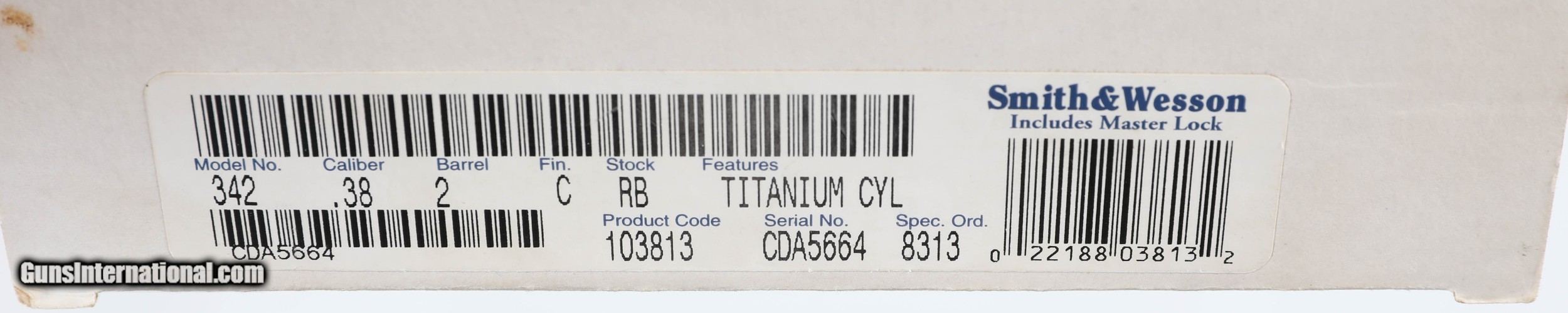 SOLD Handgun Caliber: .38 Special Manufacturer: SMITH & WESSON Model: 342 TI Serial Number: CDA56?? Barrel Length: 1 7/8 Condition: EXCELLENT |