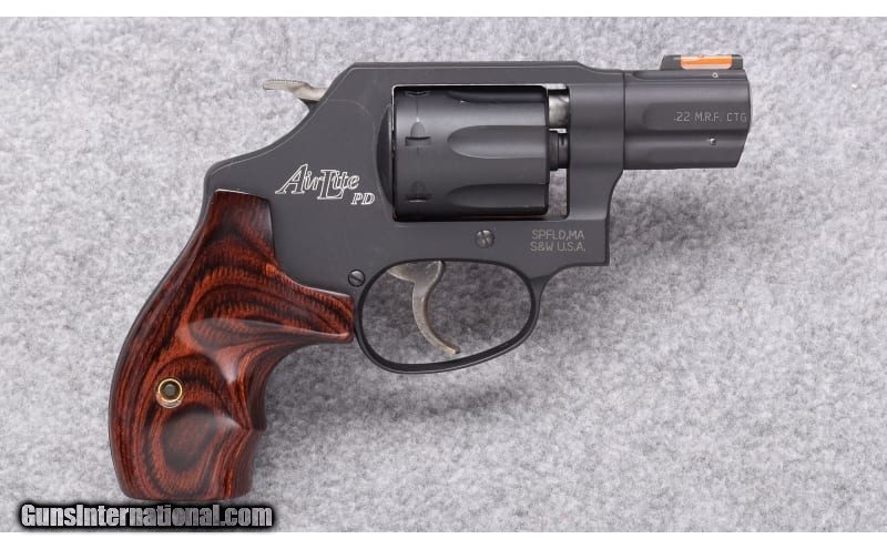 Description: S&W Airlite PD in 22 Winchester Magnum Rimfire. 7-Shot, alloy frame and cylinder with wood grips. Pre-owned in excellent condition with factory box, keys and manuals. .22 MAG SOLD Metal Condition: Matte Black Bore Condition: "Bright, Sharp Barrels: 2 Inch Triggers: DA/SA Sights: "Notched Frame, Fiber Optic Front Sight Item Location: Buda, TX |