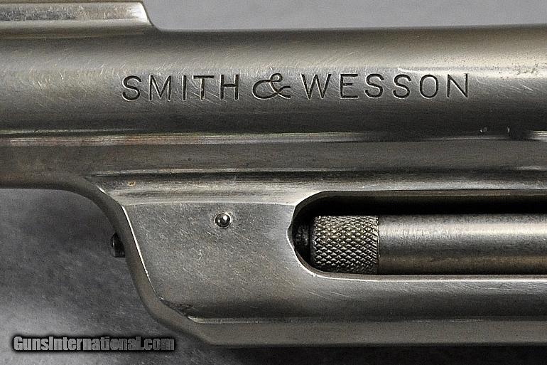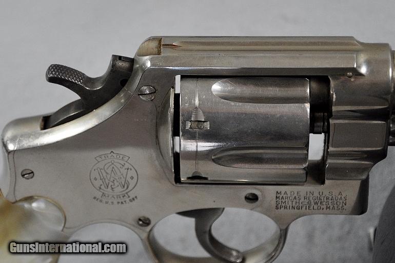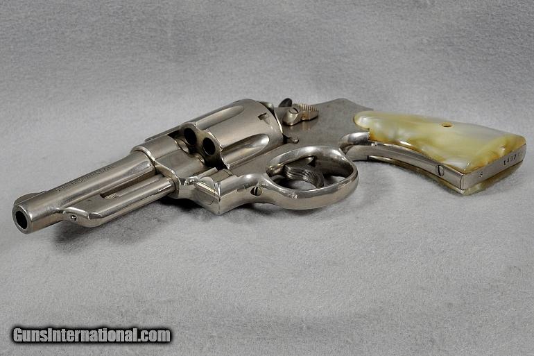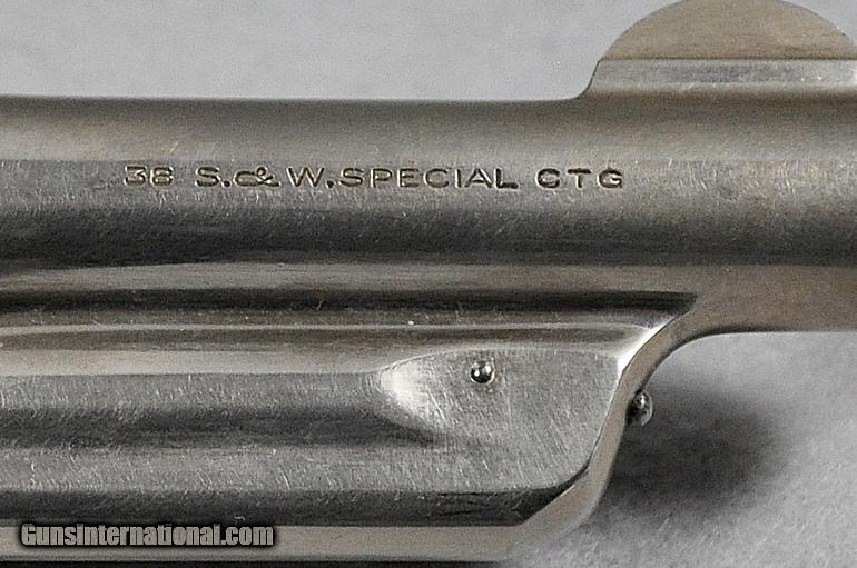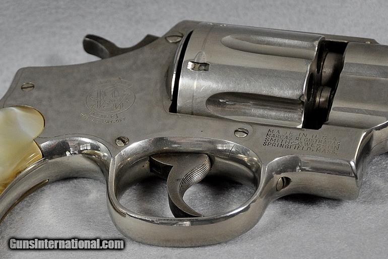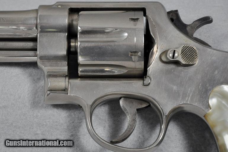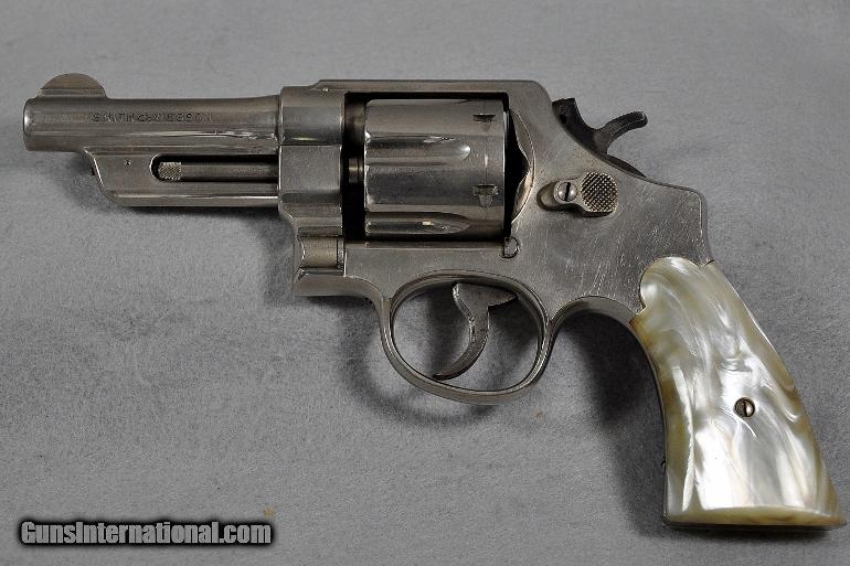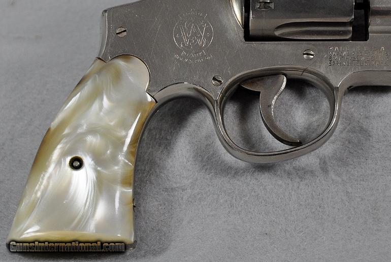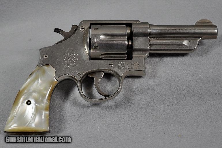Description: Smith & Wesson, double action revolver, Model 38-44 Heavy Duty (aka Pre Model 20), 5 SCREW N FRAME, caliber .38 Special, s/n S149732 (Mfg. 1950-1957, this one late 1955 to early 1956), barrel 4", retains 93% or original nickel, moderate cylinder ring, fixed sights, EXCELLENT BORE, two-piece M-O-P (Mother of Pearl) grips in PERFECT condition, Retail value $800.00, Sale priced at $695.00 Our firearms and accessories are best viewed on a desktop or laptop computer with at least a 15" high rez screen. Viewing on an I-phone, I-pad, or tablet just can't show the detail that our professional photographer exhibits in his photos. We have been in the firearms business for over 55 years (since 1960) under the same ownership. We are a Platinum dealer on GI. We are receiving up to 50 e-mails daily. All buyers are taken on a strict first come-first served basis depending on the date and time we receive their e-mail. We strive to describe all of our sale items accurately and fully and include professional quality photos of each item. We do our best to point out negatives (if any) regarding a sale item. Although we offer a 3-day, no questions asked, return policy it has rarely been used the entire time we have been in business. The first potential buyer who states that he definitely wants an item gets it. Those having questions who do not commit to purchase in their first inquiry will have their questions answered but may lose the sale if another buyer e-mails after they do and commits to purchase before we can get back to the first inquirer to answer their questions. This happens almost daily and disappoints a lot of people. If you see something you want- commit to buy it. You will not be disappointed. We cater to first time GI buyers. You can purchase from us with total confidence. We will guide you through the purchasing process if need be. WANT TO VISIT A GUN SHOW ANYTIME RIGHT ON YOUR COMPUTER? We add guns and gun related items to GI virtually every day. The easiest way is to click on the box up in the top right hand side of this ad labelled "SEE ALL LISTINGS BY MARYLAND ARMS COMPANY". Or, if you are just getting onto the computer it’s as simple as 1, 2, 3 ........ 1) After going to the GunsInternational homepage click on the box "ADVANCED SEARCH" at the top...... 2) Then click on the box "OTHER OPTIONS"..... 3) Type "MARYLAND ARMS COMPANY" into the "SELLERS SCREENAME" box and click "ENTER". Over 150 guns and related items we currently have listed on GI will come up with photos and complete descriptions that are available for purchase right now. We keep our ads current. This stuffs for sale immediately. No fooling around wasting time trying to beat out other people. No stupid fees. Who has the time and money for that? That’s the beauty of GI. Tell all your friends. USA SALES ONLY EXCEPT CA. Thank you SOLD Curio/Relic: Yes |