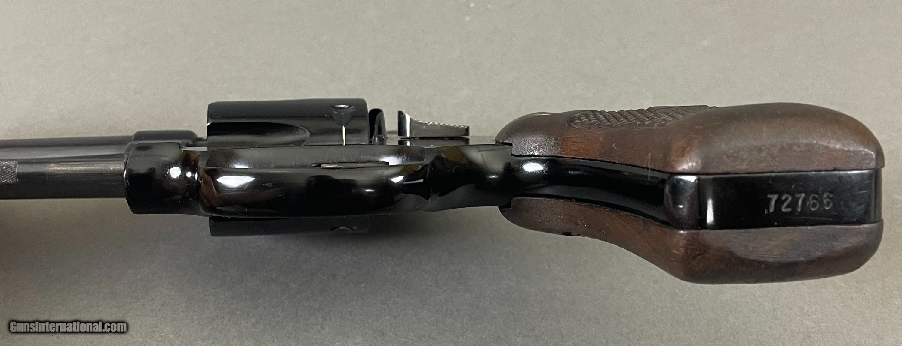 Description: Built in 1961 ( Serial # 72766 ). Desirable flat latch and aluminum frame. Drag line is visible on the cylinder but all other blue is near perfect. Does not appear to have been carried at all. An extremely nice example! Comes with a zippered gun case. $25 shipping SOLD Handgun Caliber: .22 Long Rifle Manufacturer: Smith & Wesson Model: 43 Serial Number: 72766 Barrel Length: 3 1/2 Condition: Excellent |