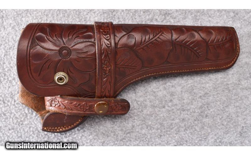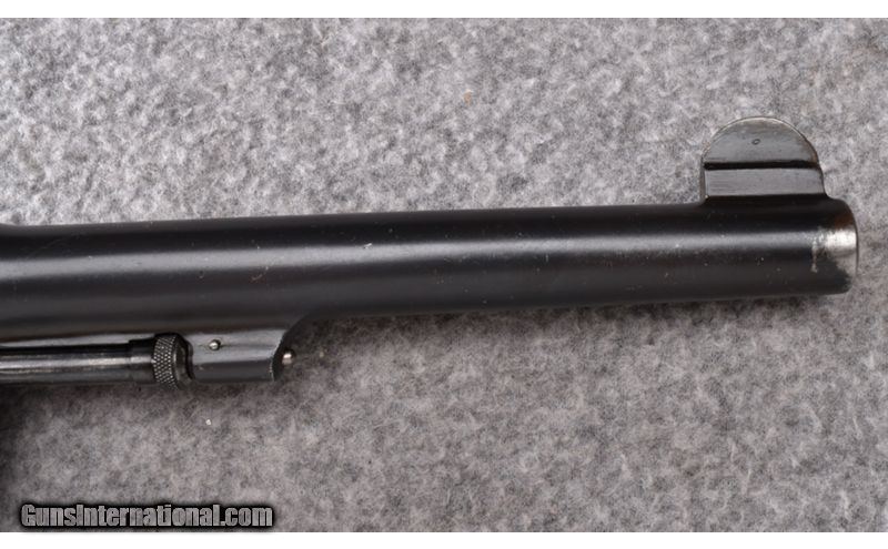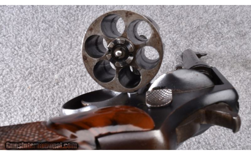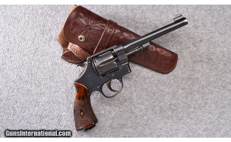 Description: This Smith & Wesson Model 455 Mark II in .45 Auto Rim is in very good overall condition. Bluing shows some blue loss on edge of muzzle and edges of cylinder. Lockup is tight but cylinder has very slight play. Bore is excellent! Complete with hand tooled leather holster made by Colorado Saddlery out of Denver. Gun has British crossed pennants on left side of frame. The historical and military significance of the Model 455 cannot be denied. Used though WWI, WWII, Korea and Vietnam they have also gained a strong following with civilian shooters. Very neat old gun! .45 Auto SOLD Metal Condition: Very Good Bore Condition: Excellent Barrels: 6 1/2 Triggers: Factory - Smooth Fore End: Checkered Bakelite Grips Weight: 2 lbs. Sights: Blade Front - Integral Notch Rear Item Location: Wheeling |
