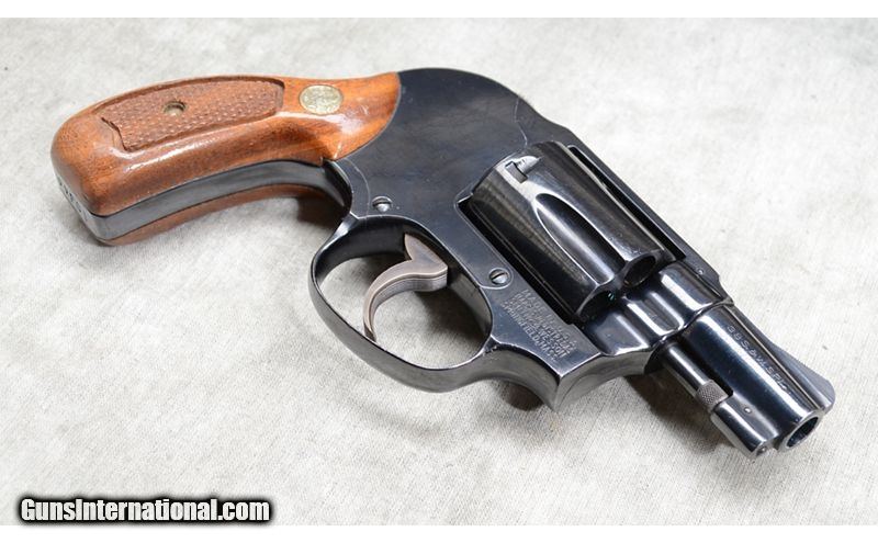 Description: The Model 49 features a shrouded hammer with serrated tab exposed so that it can be manually cocked of desired. Great for pocket or purse. So light at 21 ounces, you might forget you have it with you. .38 Special SOLD Chambers: 5 Metal Condition: Very good. Wood Condition: Very good. Bore Condition: Shiny and bright with good rifling. Barrels: 1-7/8 inches Triggers: Facatory single and double action trigger. Butt Pad: Round butt hardwood. Weight: 20.5 oz Sights: Serrated ramp and top strap groove. Item Location: Rogers |