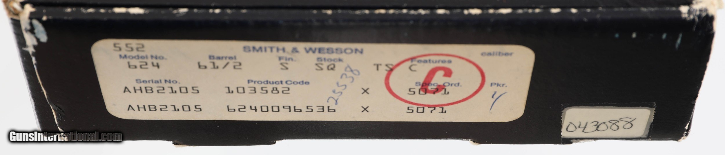 SOLD Handgun Caliber: .44 Special Manufacturer: SMITH & WESSON Model: 624 Serial Number: AHB21?? Barrel Length: 6 1/2 Condition: EXCELLENT |