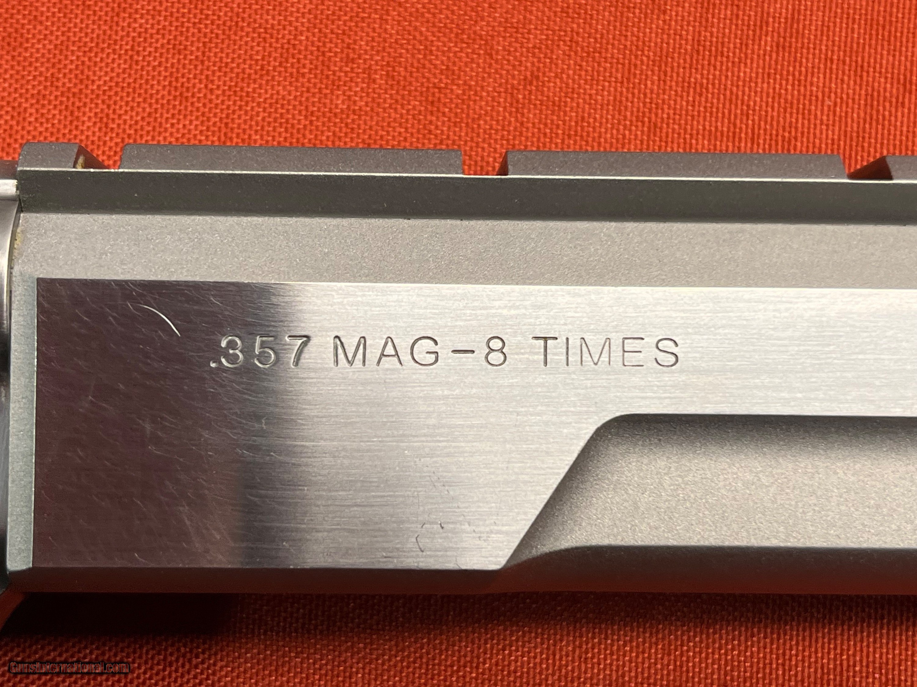 Description: SMITH & WESSON MODEL 627PC REVOLVER 357 MAGNUM ~ 8-SHOT CYLINDER ~ PERFORMANCE CENTER REVOLVER, SER# LHR0193, CALIBER 357 MAGNUM. 6 INCH PORTED WEIGHTED SLAB SIDE BARREL,. STAINLESS FINISH . USED BUT IT GOOD CONDITION . EASTERN BRANCH FIREARMS ADD 50.00 SHIPPING – HANDGUNS SHIP NEXT DAY AIR ADD 50.00 SHIPPING – LONG GUNS SHIP GROUND OPTIONAL INSURANCE IS AVAILABLE AT 1.25 PER 100.00 Questions e-mail or call Glen at Eastern Branch Firearms 207-215-5021 TERMS – PLEASE READ BEFORE I DO NOT HAVE A LAYAWAY OPTION ( WE ACCEPT CREDIT CARDS ) -- I GET ALOT OF REQUEST FOR TRADES, I WOULD PERFER NOT TO DO TRADES ON MY INTERNET LISTINGS PAYMENT OPTIONS- We accept money orders, cashier’s checks , bank checks. sorry no personal checks. We accept all major credit cards please add 3% to the ’s cash discount price.(Shipping within the state of Florida - Florida Residents must pay sales tax) .Handguns and long guns do need to be shipped separate. PLEASE do not send payment via FED EX . USPS & UPS are fine. Thank you. We include a signed copy of our FFL with each firearm shipped. SAFTY NOTICE- Buyer is solely responsible for determining that a used gun is safe to shoot. The firearms offered have not been test fired but have been given a visual inspection only for purposes. It is a requirement that every used firearm is inspected by a qualified gunsmith before firing. By , the buyer agrees to hold seller harmless against damages, injury, or death caused by defective merchandise. RETURN POLICY- All firearms come with a 3-day non firing , non messing with ( turning srews ,taking apart,removing parts, scoping. firing, cleaning or messing with in anyway) inspection/return privilege.Inspection is based on a visual review of the gun to confirm the gun is in the condition stated. In the case of a return, buyer pays all shipping charges & if paid for with a credit card buyer absorbs the 3% credit card charges . So please ask questions BEFORE you bid. Thanks for Looking and Good Luck!! U.S. sales only, no exports…this includes antiques. I will ship to third party for exporting SOLD |
