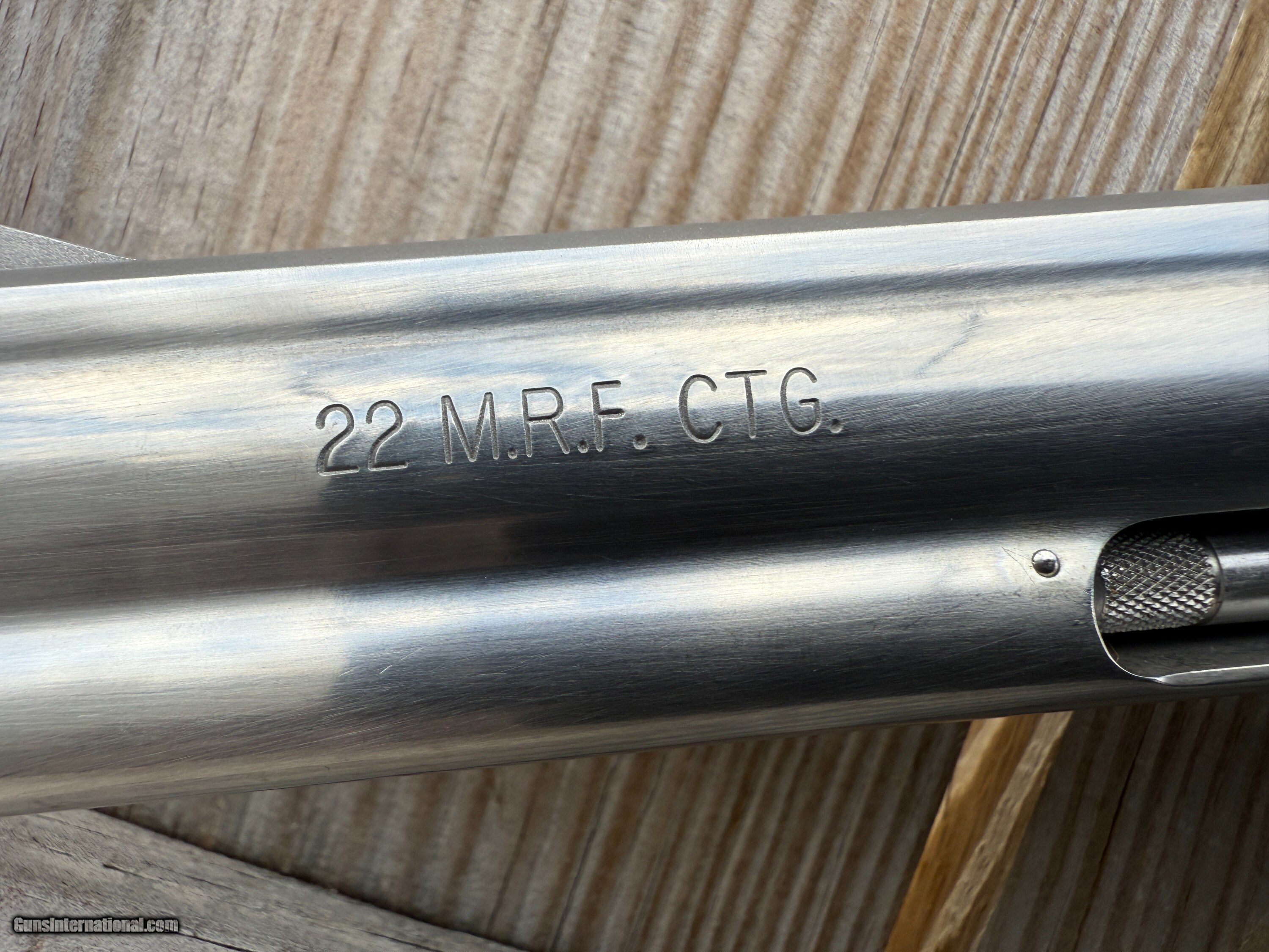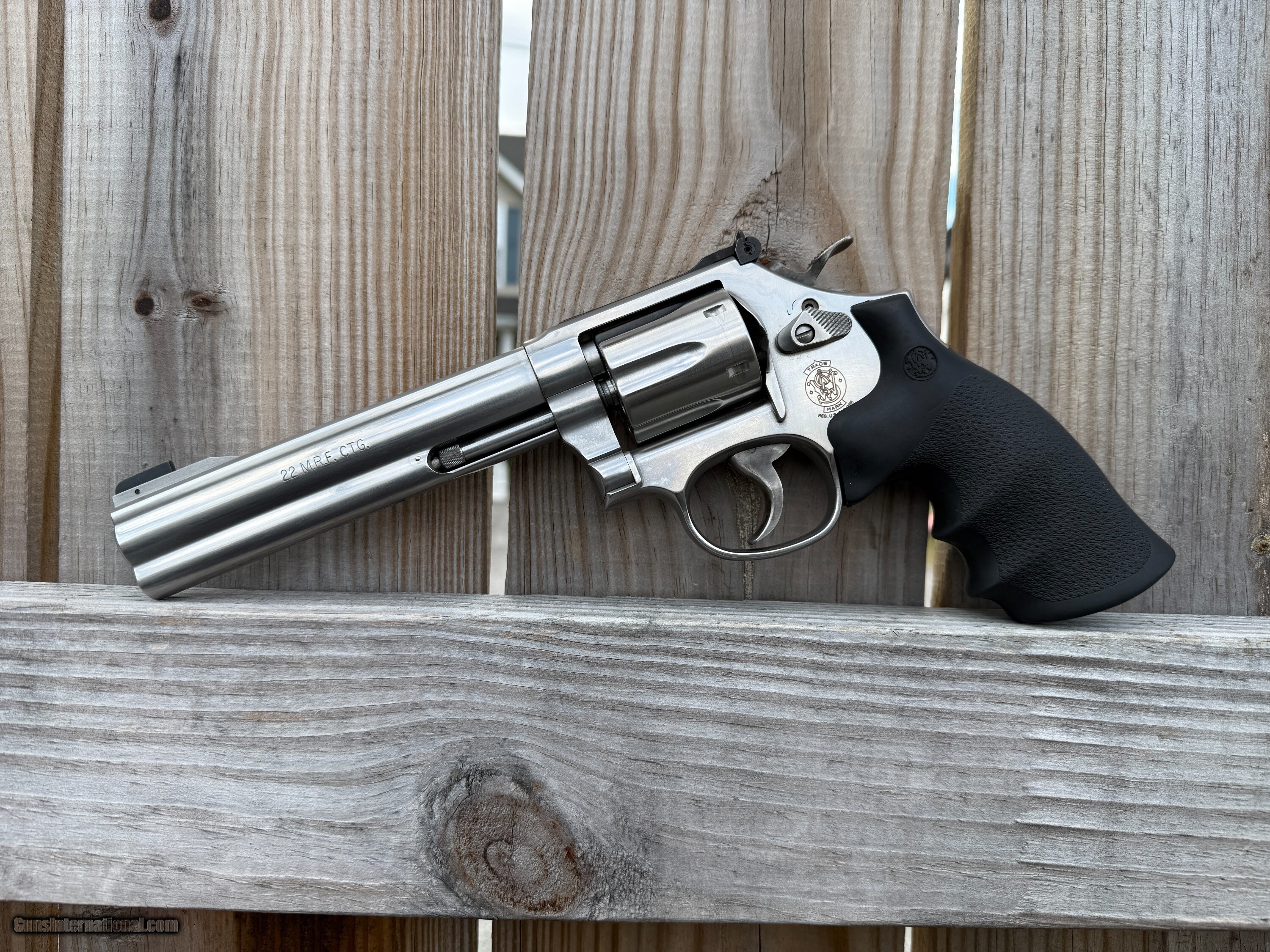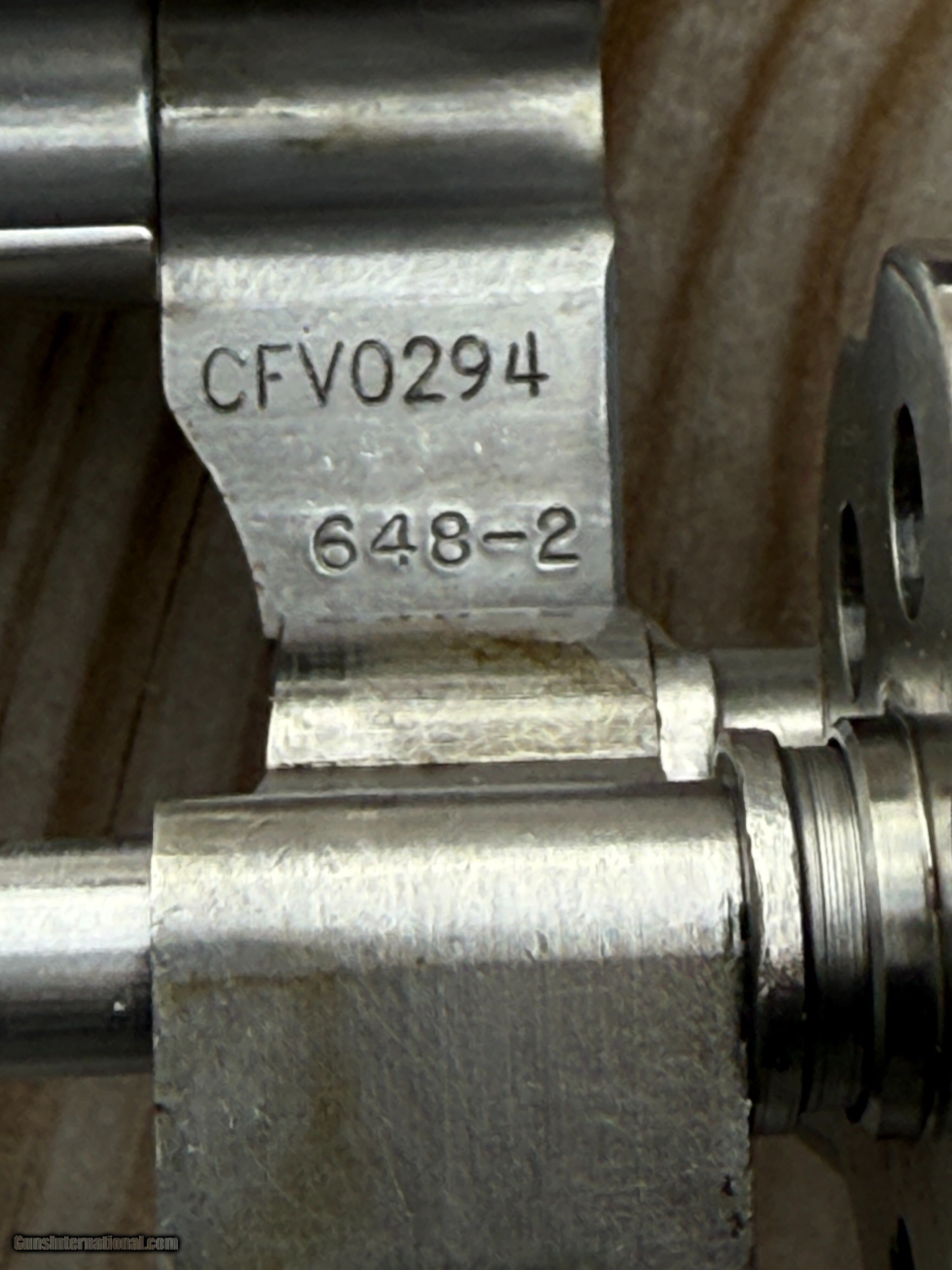 Description: Here we have a Smith & Wesson Model 648-2 .22 WMR. It's a stainless steel, K-frame 6-shot revolver known for accuracy and power in the .22 Magnum (WMR) caliber, featuring a 6-inch barrel, adjustable target sights, and rubber grips. Handgun Caliber: .22 WMR (.22 Magnum) Manufacturer: Smith & Wesson Model: 648-2 Serial Number: CFV0294 Barrel Length: 6 Bore Info: Very Good Condition: Very Good Metal Condition: Very Good Bore Condition: Very good Price: $900.00 Contact Seller |