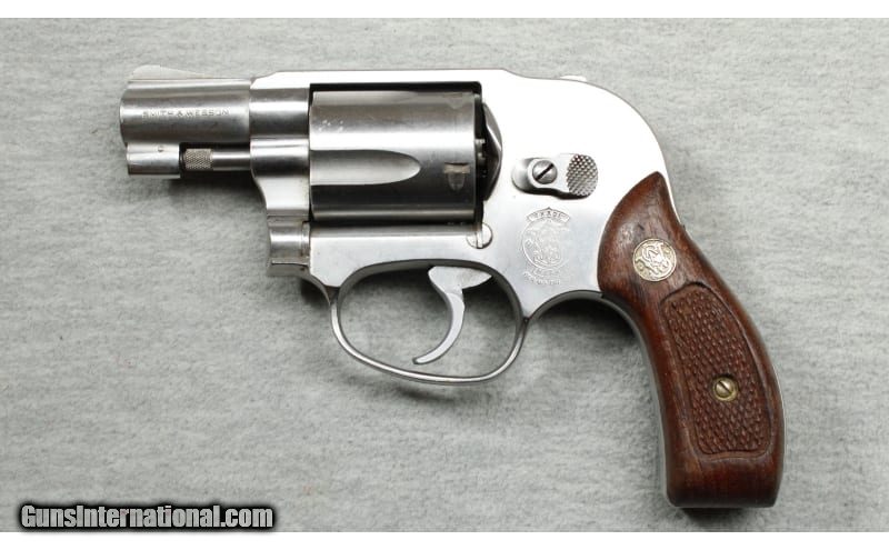 Description: Very good condition, some finish wear, small nicks & scratches. Classic S&W "snub nose" revolver, 1 7/8" barrel, stainless finish, fixed sights, 5 shot fluted cylinder, checkered hammer & cylinder latch and S&W checkered wood grips. .38 Special SOLD Chambers: Revolver Metal Condition: Very good Bore Condition: Bright Barrels: 1 7/8 Triggers: Double and single action Butt Pad: Wood grips Sights: "Fixed rear, ramp front sights Item Location: La Vista, NE |
