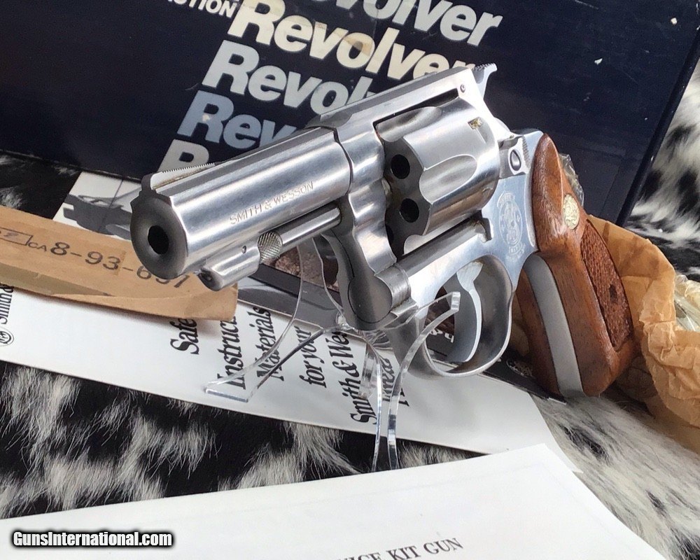 Description: .22 caliber Winchester Magnum Rim Fire. Double action revolver built on the round butt stainless J Target frame three screes. 3 inch heavy barrel, 6 shot fluted cylinder, service hammer and smooth combat trigger. Serrated ramp front sight with square notch rear sight. Checkered Walnut Magna grips with medallions. This gun was special ordered with an auxiliary .22 Long Rifle cylinder. Produced 1983-88. This revolver comes in factory numbered to gun box with extra cylinder and owners papers intact still covered with factory packing grease. Unfired and pristine for the fussiest collector. Made in the USA. Add 3% if paying with credit card. Free shipping for US veterans. God Bless America from a proud American, and a Viet Nam Vet , thankful for our freedoms.. paid for by the Blood ,Sweat and Tears of our brave men and women in uniform. Ten Below Firearms is a Veteran owned and operated business. We specialize in out of production models of high quality firearms. We love to ship! If you are out of state or can't make it to our store, just give us a call! Handguns normally ship for $30 and Long guns for $40 to $65 for extra length long guns. That's 2-3 day USPS Priority shipping, Delivery conformation and with tracking number. Optional Postal insurance is additional $1.70 per $100 and highly recommended. We are OPEN BY APPOINTMENT ONLY FOR IN PERSON VISITS SOLD Handgun Caliber: .22 Long Rifle, .22 WMR (.22 Magnum) Manufacturer: Smith & Wesson Model: 650 no-dash Serial Number: ADF0622 Barrel Length: 3 inch Condition: New Metal Condition: New Wood Condition: New Bore Condition: New Barrel Type: Heavy Action: DA/SA Triggers: Combat Finish: Satin stainless Sights: Fixed Manufacture Date: 1983 Extras: .22LR cylinder Case: Factory box Item Location: Mn |