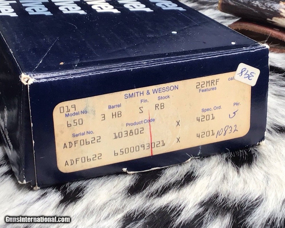 Smith & Wesson model 650 no-dash, The .22 Magnum Rimfire Service Kit Gun Stainless, Two Cylinders