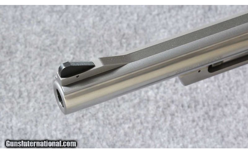 Description: In the early 1960s the .41 Remington Magnum cartridge was developed as a police round. The idea was to have round that didn't have the draw backs of the .357 which tended to over penetrate and not have the recoil of the more powerful .44 Remington Magnum cartridge. Through the years the .41 Magnum has developed a cult like following. Smith & Wesson introduced the Model 57 and the combat purposed model 58 in 1964. The stainless steel Model 657 was introduced 1986. This Smith & Wesson Model 657-1 (manufactured 1989) looks to have been a in holster a few times and is in overall very good condition. .41 Remington Magnum SOLD Metal Condition: Very good with some wear Bore Condition: Excellent Barrels: 6 inch barrel Triggers: Smooth target trigger and target hammer Weight: 51 oz. Sights: Micro click adjustable rear sight and ramped front blade Item Location: Lehi, UT |
