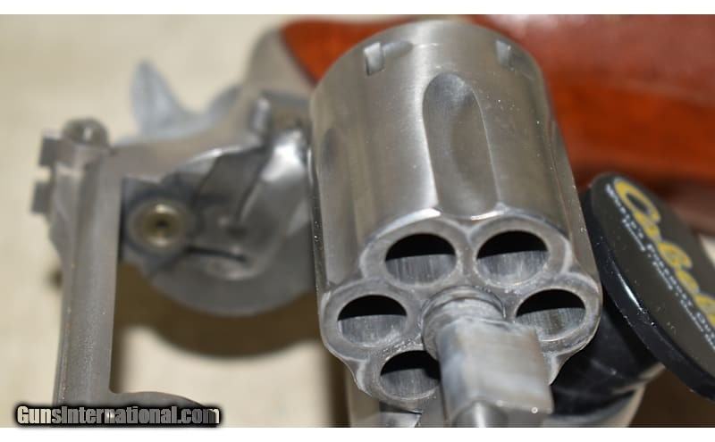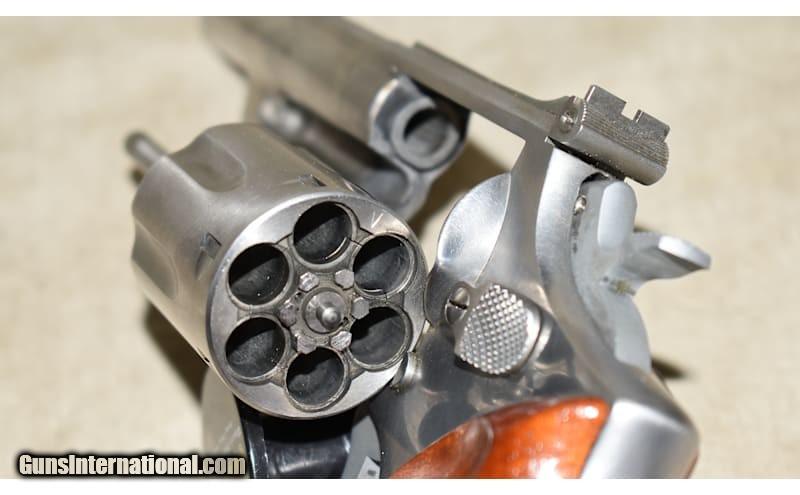 Description: This medium size revolver features matte stainless steel construction, oversize grips, and adjustable sights. With its 4-inch barrel it will be an easy carry for pest control, or light hunting; while still giving good sight radius for accuracy. .357 Magnum Chambers: 6 rounds Metal Condition: Very good. Firing residue on the cylinder faces. Wood Condition: Very good to excellent. Bore Condition: Shiny and bright with good rifling. Barrels: 4 inches Triggers: Factory single and double action trigger. Butt Pad: Oversize checkered walnut grips. Weight: 37 oz Sights: Serrated ramp and adjustable notch open sights. Item Location: Rogers Price: $999.99 Contact Seller |