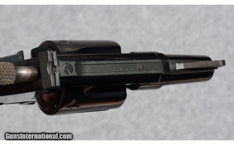 Description: This is one of the "Postwar or Traditional" Kit Guns This double action revolver is built on an improved I frame. It has a flat cylinder latch and a round but set of grips. .22 Long Rifle SOLD Chambers: Revolver Metal Condition: Good with bluing wear on several areas of the frame and barrel. The lanyard swivel has been cut off. Wood Condition: Like New Bore Condition: Like New Barrels: 2 Triggers: Factory Trigger Weight: 1 1/4 lbs. Sights: Blade Front Sight with Fixed Rear Sight Item Location: Tulalip, WA |