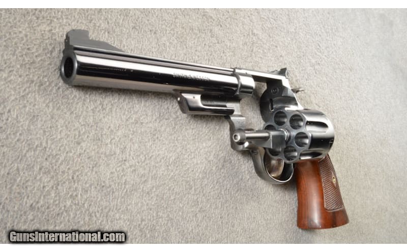 Description: This is an excellent example of a Smith & Wesson Target Model of 19955, five screw, chambered in 45ACP with a 6.5" heavy barrel. This hand ejector has a polished blued finish, adjustable rear sight, case colored target hammer / trigger, and checkered walnut target square butt stocks with silver Smith & Wesson medallions at their top. This gun appears unused, but show a faint cylinder drag line. Gun only with a provenance paper. Serial S161651. .45 ACP Chambers: 6 shot revolver. Metal Condition: Rates about 99%. Wood Condition: Rates about 99%. Bore Condition: Bright bore with sharp rifling. Barrels: 6.5" barrel. Triggers: SA/DA. Sights: Adjustable rear. Item Location: Owatonna, MN Price: $1,499.99 Contact Seller |