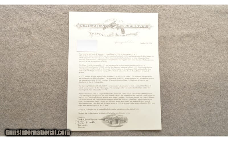 Smith & Wesson ~ Model of 1955 ~ Target ~ 45 ACP ~ Shipped May 22, 1957