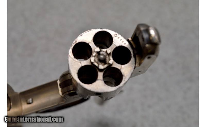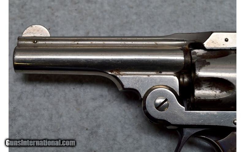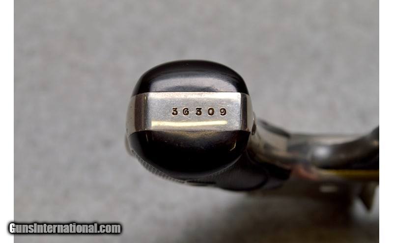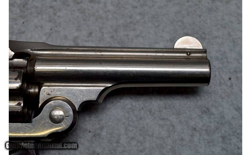Description: Smith & Wesson New Departure top-break revolver. Unknown .32 caliber. This is a Smith & Wesson Safety Hammerless 1st Model revolver in .32. This nickel-plated revolver was officially called "The New Departure", and nick-named the "Lemon Squeezer." It was made from 1888-1902, and features a 3" barrel, a five-shot cylinder, a grip safety, push button break top design with an automatic ejector, double action only operation, and checkered grips. The numbers on the frame and cylinder match. This revolver is in good condition with discoloration of the nickle finish. The grips are in excellent shape with no cracks or chips. The mechanical functioning is very good with a functional grip safety, good lockup, Unknown Barrels: 3 inches Weight: 1.2 lbs Item Location: Avon, OH Price: $399.99 Contact Seller |