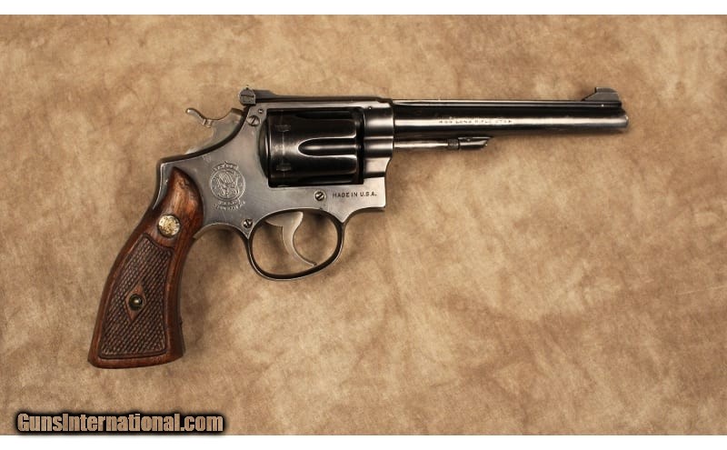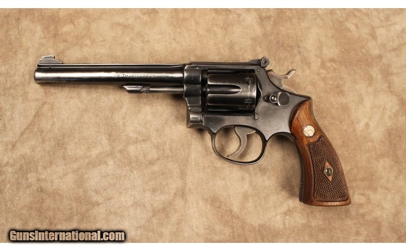 Description: Pre-owned Smith & Wesson 6" barrel 22 Long Rifle revolver possibly a pre-17 model. Has fair amount of bluing loss on barrel and frame .22 Long Rifle SOLD Chambers: 22 Long rifle Metal Condition: Good Bore Condition: Good Barrels: 6 Weight: 2.5 Item Location: Mesa, AZ |