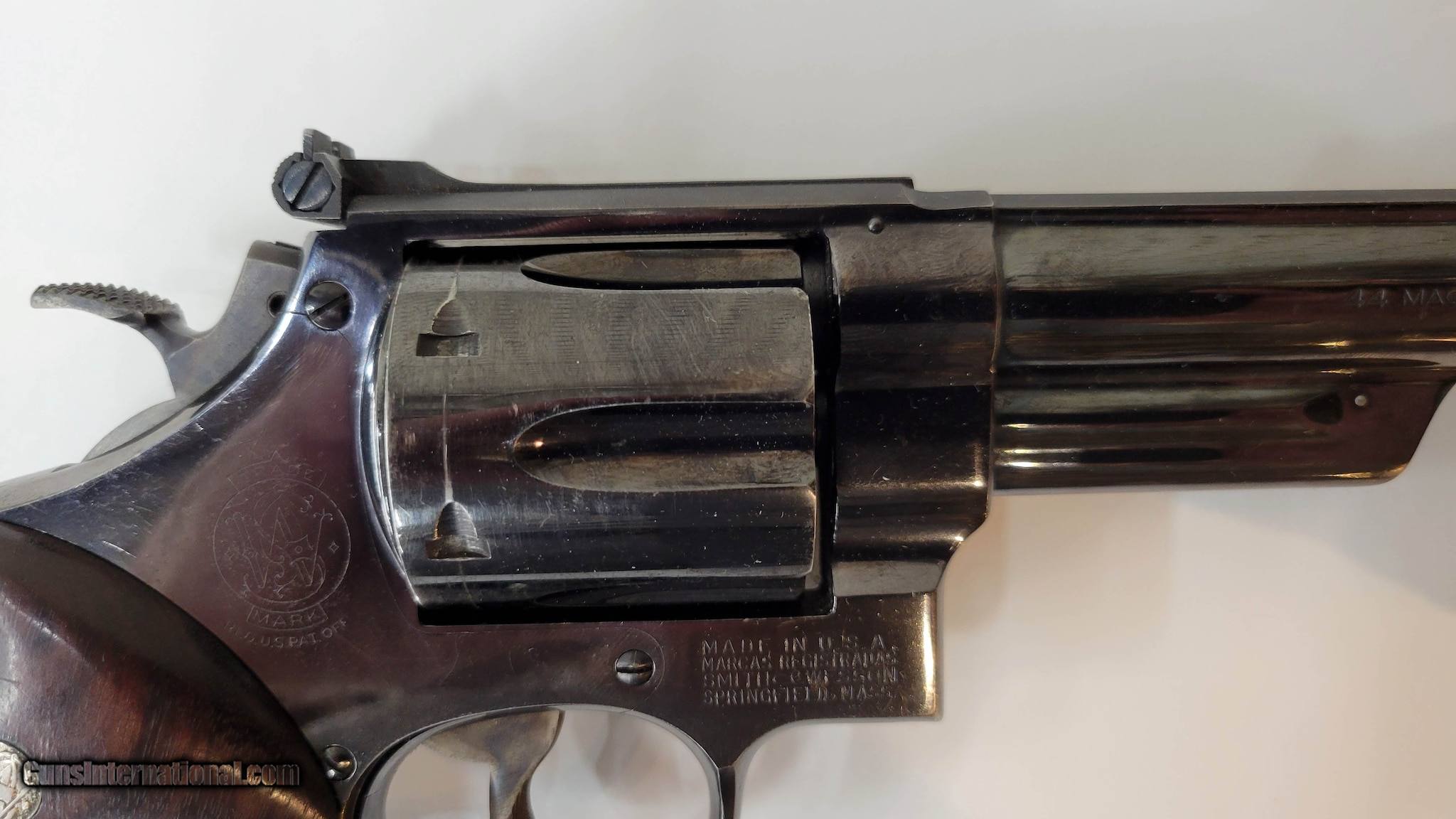 Description: Guns Listing ID: 612988 Really nice Smith and Wesson pre-model 29 mfg. in 1956. These guns are rare and hard to find in very good to excellent condition. The bluing on frame and barrel shows some wear. The gun has had very little use and the lock up and timing are excellent. Grips are original and in very good condition. The gun has a target trigger and hammer and adjustable rear sight. The trigger is 3 lbs. and very smooth. This gun has been in a home safe for most of its life. The most recent owner used the gun very little. Great gun for completing your model 29 collection or someone wanting a gun they can take to the range and have some fun. This gun won‚‚t last long, so if you have an interest do not hesitate SOLD Manufacturer: SMITH & WESSON Model: "PRE 29 Caliber Info: .44 MAGNUM Condition: Used - Non-Certified Barrels: 6.5 BARREL Finish: BLUE |