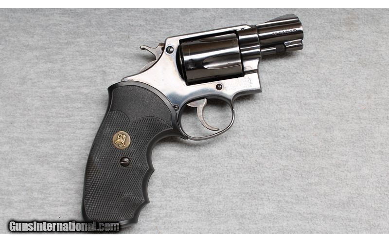 Description: Very good condition, light finish wear, small nicks and scratches. Classic S&W .38 Special revolver, blue finish, fixed sights, 2" barrel, Pachmayr hard rubber grips. Manufactured in 1950. .38 Special SOLD Chambers: Revolver Metal Condition: Very good Wood Condition: Grips are very good Bore Condition: Bright Barrels: 2 Triggers: Double and single action Butt Pad: Pachmayr grips Sights: Fixed sights Item Location: Thornton, CO |
