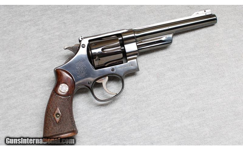 Description: Excellent condition, light wear and handling marks. Serial number 53999 The earliest S&W .357 Magnums were built to the individual customer's specifications in term of barrel length (in 1/8" increments), sights, grips and finish. In addition to being the most powerful, it was arguably the finest-made revolver of the time. Smith & Wesson was proud enough of the product that it assigned a "Registration Number" to each revolver, stamped in the frame cutout for the yoke. It shipped each gun with a card that allowed the owner to send in for a Registration Certificate, showing him as the original purchaser of that particular gun. .357 Magnum SOLD Chambers: Revolver Metal Condition: Excellent Wood Condition: Grips are excellent Bore Condition: Bright Barrels: 6 Triggers: Double and single action Butt Pad: Wood grips Sights: Adjustable Item Location: La Vista, NE |