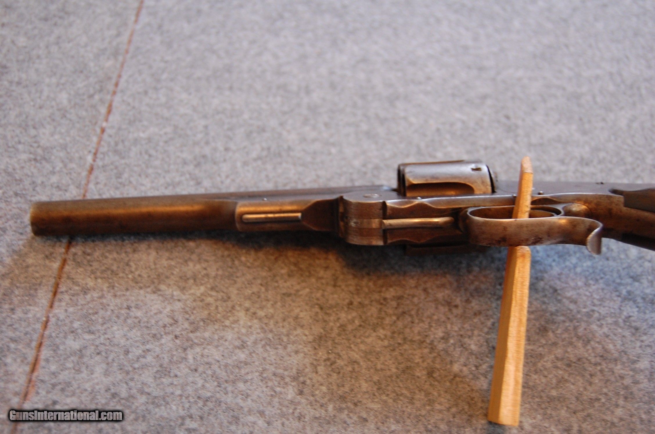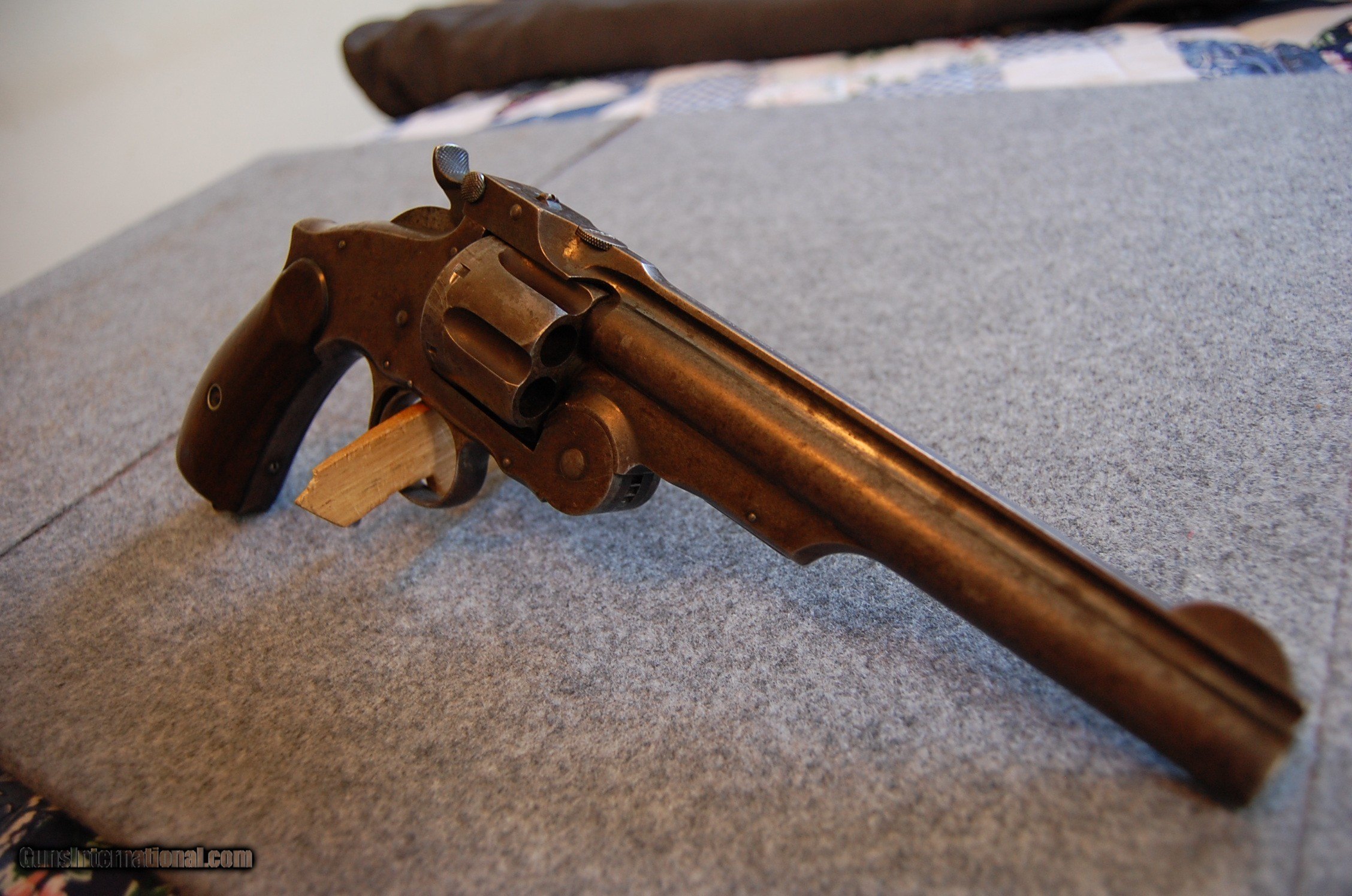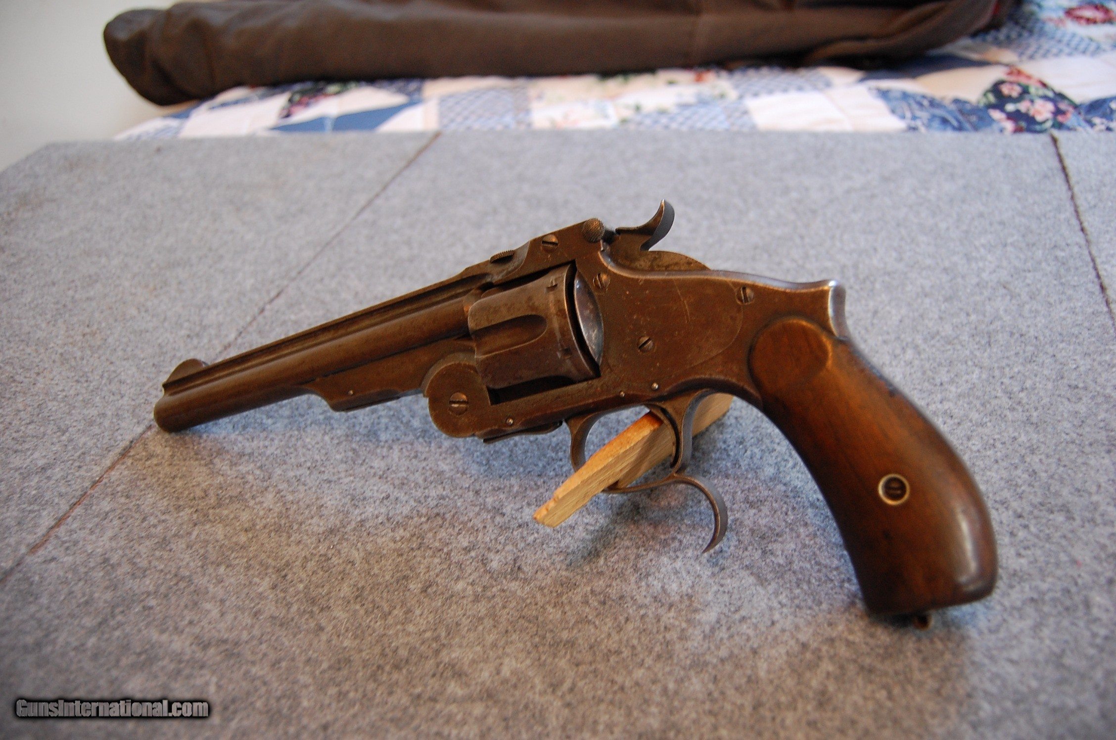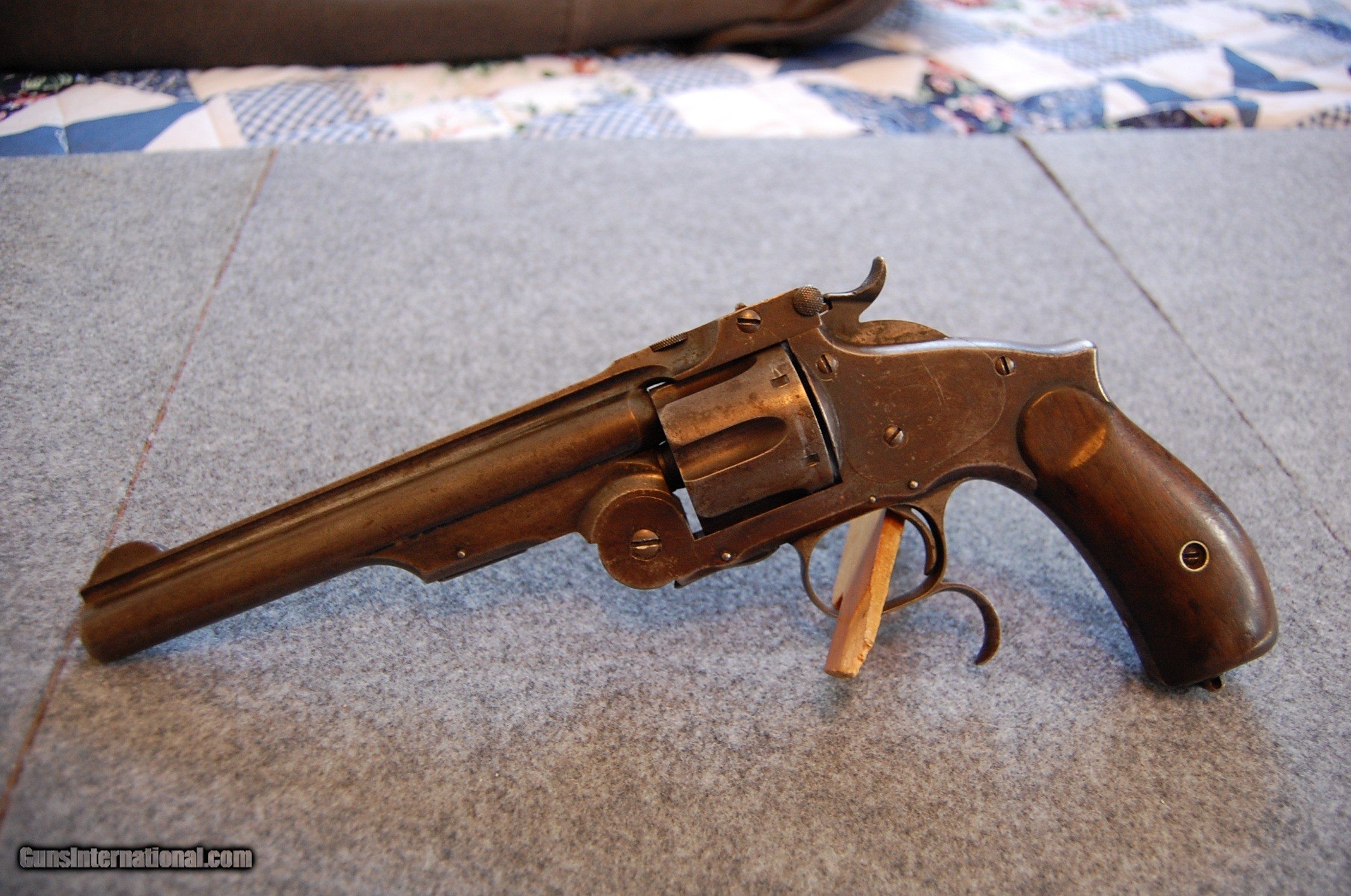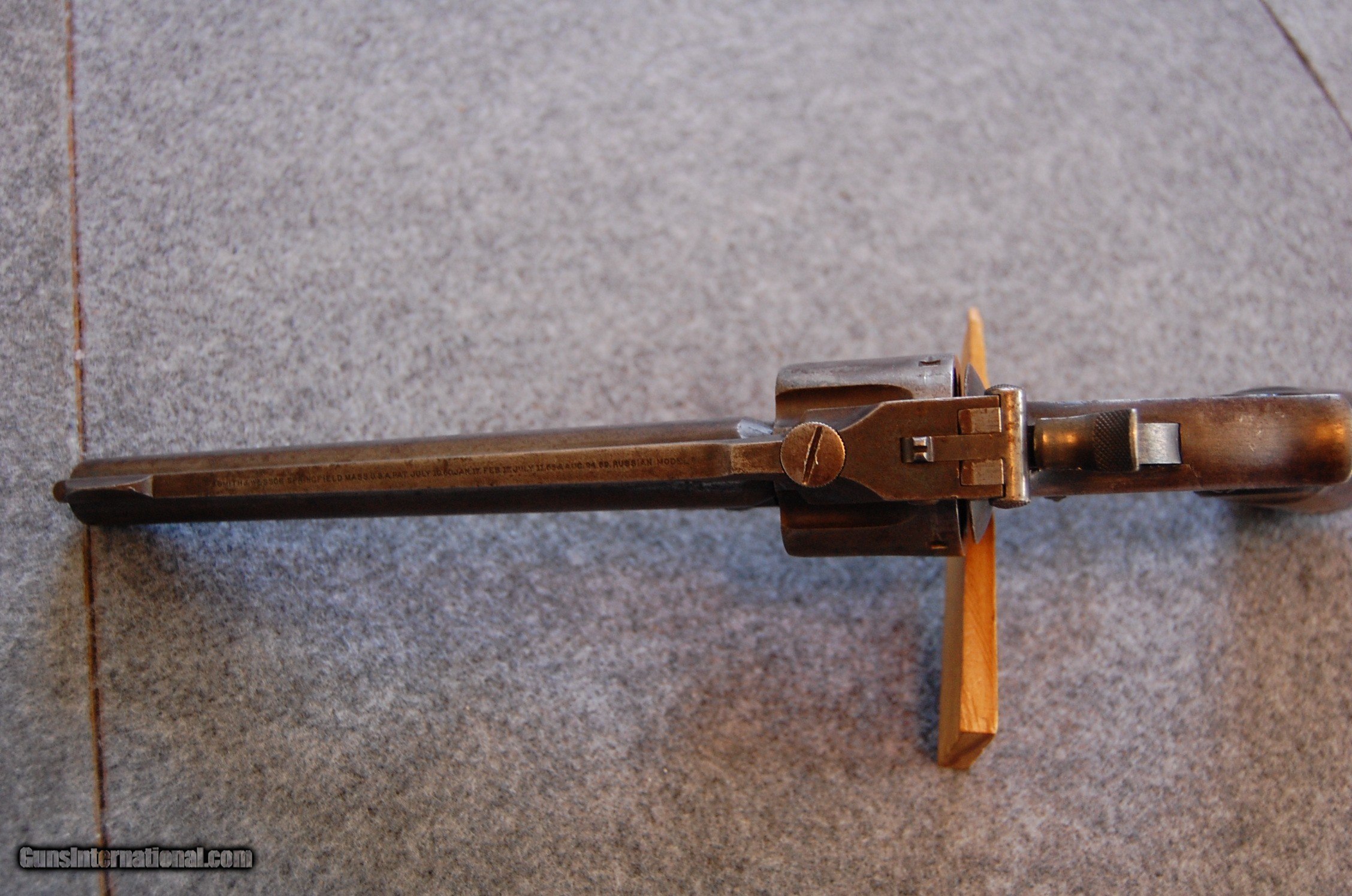 Description: Smith & Wesson Russian Model made 1874 S# 46259 .44 Russian cal 6-1/2" barrel Mechanics are excellent Has blue in protected areas All numbers match From my collection SOLD Antique: Yes |