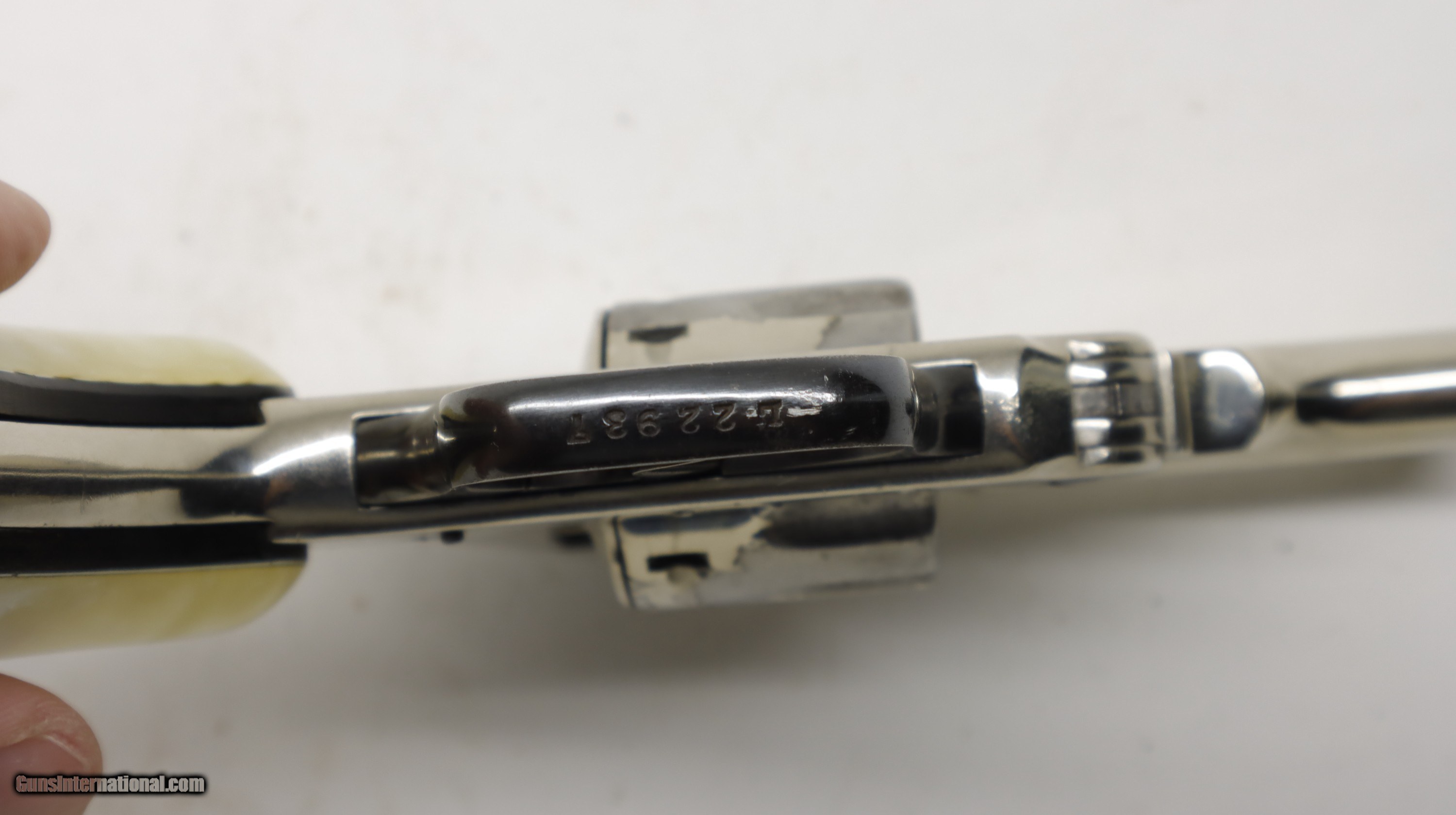 Description: Smith & Wesson S&W 22 lr Double Action 2.5" barrel. SN is L22937. Factory nickel finish, Pearl grips. Good bore, looks to be in good mechainally working order.. Hammer, ejector and cylinder all work as they should. Trigger will not lock back in single action, but works as it should in double action. We will trade for silver and gold. All my guns (except layaway) come with a non-firing, 3 day unconditional return privilege, from the day UPS delivers to your dealer. Buyer pays shipping both ways if the gun comes back. Please make sure to make it to your FFL to inspect within the 3 days. We accept personal check or any certified funds. We can also take your credit card, +3%. Email me if you would like these pictures sent to you, they will come through bigger and better than on the listing page here. We do offer Layaway. Our standard terms are 25% down, 90 days. Initial deposit is not refundable. Layaway guns do not have a return/inspection period. Email me with any questions. Please check your local laws to confirm it is legal to own in your state! Buyer pays $30 shipping and insurance to your FFL in the lower 48. AK, HI or PR is extra. I will ship to California, as long as it is legal, NO PROBLEM! I am a licensed FFL, and will include a copy of my FFL with the gun for your dealer’s records. I will ship to a C&R if the gun is eligible. I will ship to California, but you need to confirm the gun is legal where you are, California or other. WE BUY AND CONSIGN GUNS AND GUN COLLECTIONS! Will travel! I am always looking for good clean, old original Winchesters to buy, consign, or trade, especially Pre '64's model 70's and model 54's. WE ALSO TRADE FOR CLASSIC CARS AND TRUCKS! We also trade for gold and silver. SOLD Handgun Caliber: .22 Long Rifle Manufacturer: Smith & Wesson Model: top break Barrel Length: 2.5 Condition: Used |