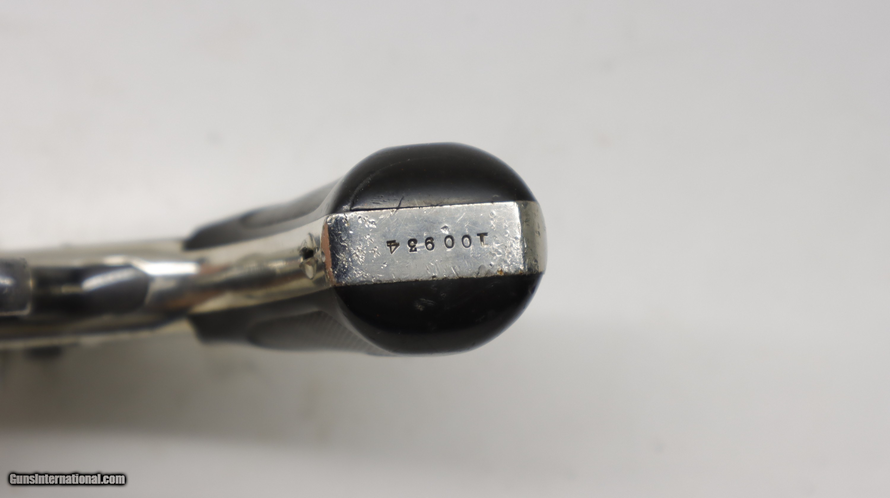 Description: Smith & Wesson S&W 38 Double Action 2nd Model, 3.25" 38 S&W. SN is 1009xx. According to Fladerman it was made between 1880-1884. Factory nickel finish, factroy grips. Good bore, looks to be in good mechainally working order.. Trigger, hammer, ejector and cylinder all work as they should in DA, but I can not get the hammer to lock back in single action. We will trade for silver and gold. All my guns (except layaway) come with a non-firing, 3 day unconditional return privilege, from the day UPS delivers to your dealer. Buyer pays shipping both ways if the gun comes back. Please make sure to make it to your FFL to inspect within the 3 days. We accept personal check or any certified funds. We can also take your credit card, +3%. Email me if you would like these pictures sent to you, they will come through bigger and better than on the listing page here. We do offer Layaway. Our standard terms are 25% down, 90 days. Initial deposit is not refundable. Layaway guns do not have a return/inspection period. Email me with any questions. Please check your local laws to confirm it is legal to own in your state! Buyer pays $30 shipping and insurance to your FFL in the lower 48. AK, HI or PR is extra. I will ship to California, as long as it is legal, NO PROBLEM! I am a licensed FFL, and will include a copy of my FFL with the gun for your dealer’s records. I will ship to a C&R if the gun is eligible. I will ship to California, but you need to confirm the gun is legal where you are, California or other. WE BUY AND CONSIGN GUNS AND GUN COLLECTIONS! Will travel! I am always looking for good clean, old original Winchesters to buy, consign, or trade, especially Pre '64's model 70's and model 54's. WE ALSO TRADE FOR CLASSIC CARS AND TRUCKS! We also trade for gold and silver. SOLD Handgun Caliber: .38 S&W (.38 Colt New Police, .38 Super Police) Manufacturer: Smith & Wesson Model: 38 DA Barrel Length: 3 1/4 Condition: Used |